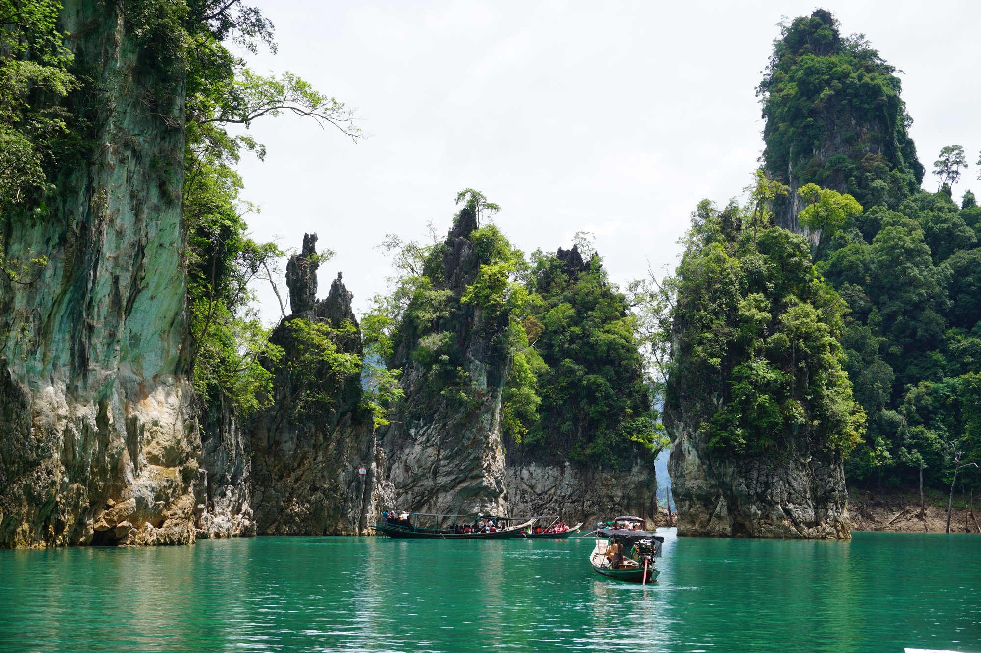 Onze verwachtingen van Khao Sok zijn best hoog. Het park is enorm geliefd en als je dan ook nog wat perfecte foto's van het park voorgeschoteld krijgt, dan komt deze plek al snel op je wensenlijst. Het park bestaat uit een groot meer met blauwgroen water, puntige bergen en verder een dichtbegroeid, tropisch regenwoud. Het is de leefomgeving van onder andere apen, olifanten, slangen en honderden vogelsoorten. Klinkt als een paradijs, toch?