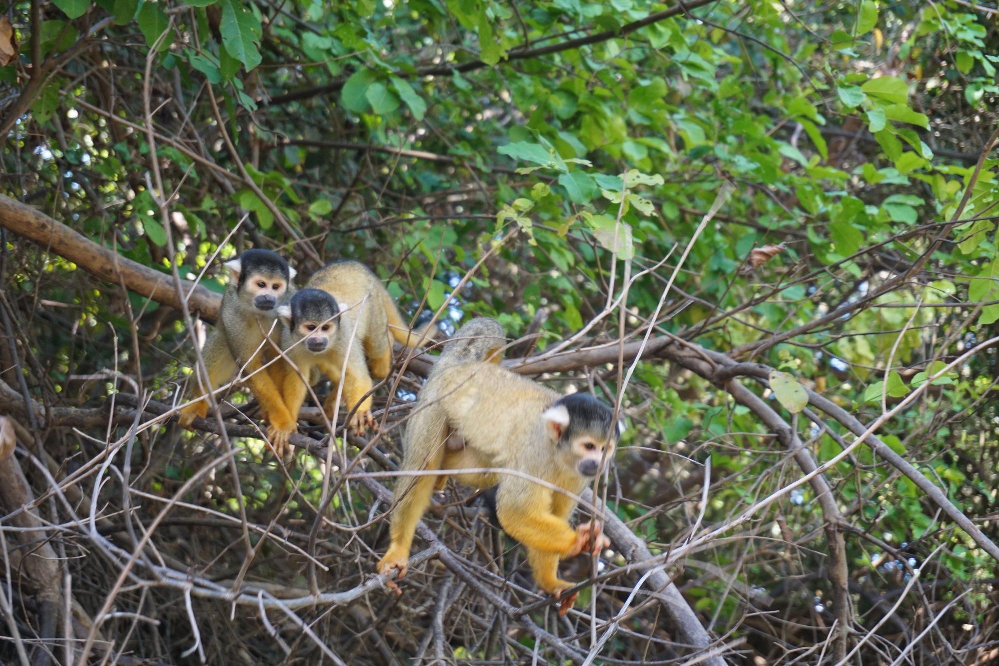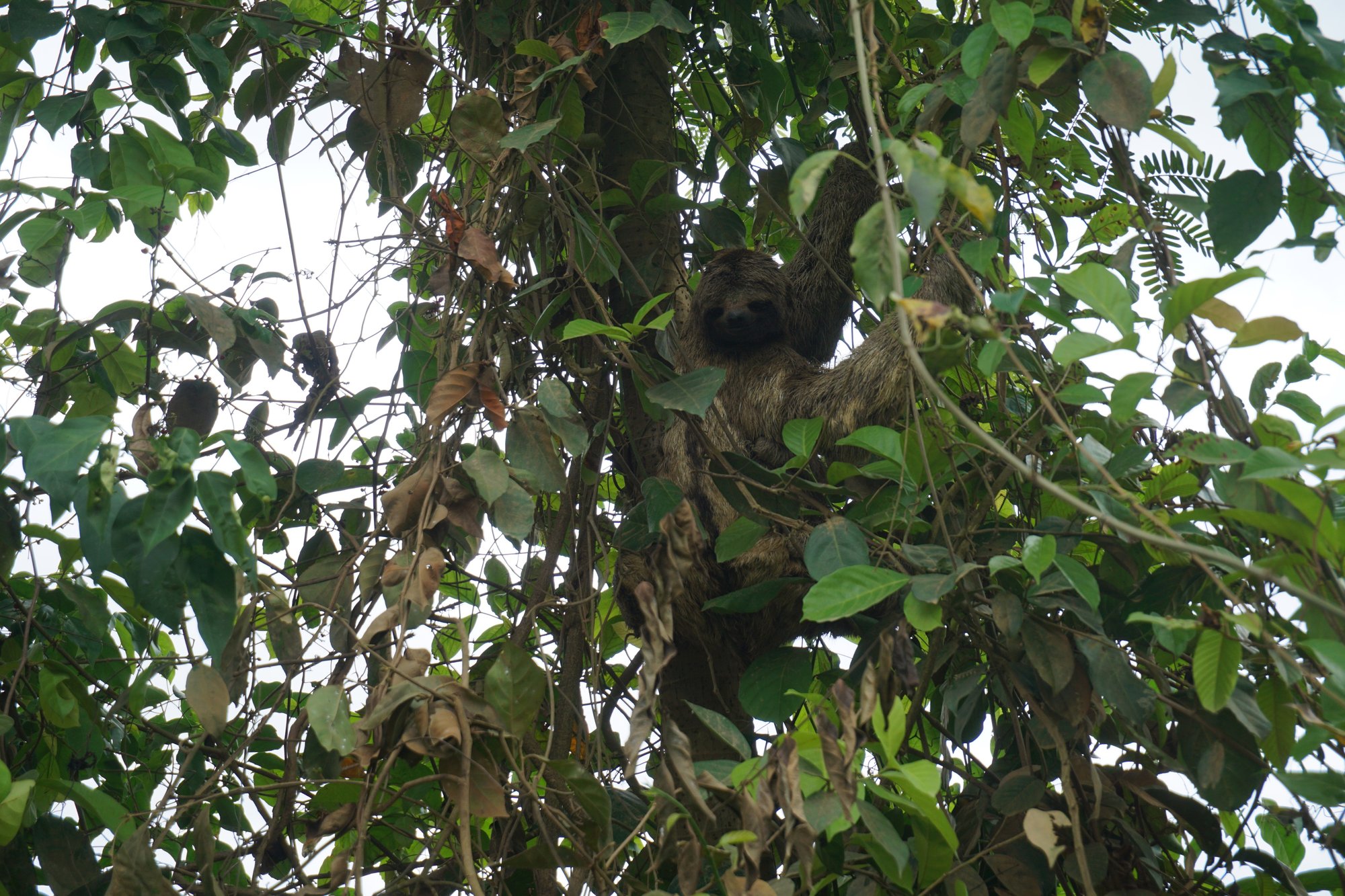 Rond 9 uur verzamelen we bij het tourbureau en gaat ons avontuur beginnen. Eerst moeten we een flink stuk per jeep afleggen, zo'n 3 uur. Maar saai is het niet, want onderweg zien we al wat dieren. Vlak langs de weg zit bijvoorbeeld een luiaard met een baby'tje op haar buik. Super schattig! Luiaards bewegen zo ontzettend langzaam en lijken altijd te glimlachen. Eén van mijn favoriete dieren!