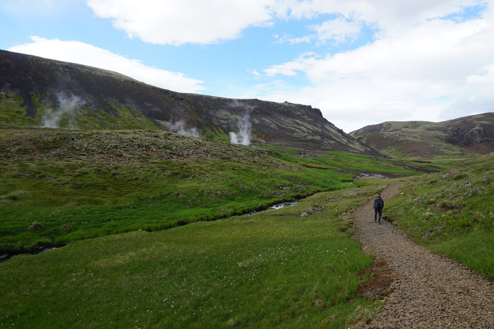 IJsland heeft ontzettend veel hot springs. De bekendste is natuurlijk de Blue Lagoon, alhoewel dit geen natuurlijke hot spring is, maar er zijn er zoveel meer. In de buurt van de Golden Circle kun je bijvoorbeeld naar de kleine Hrunalaug hot spring, maar je kunt ook naar de warme rivier Reykjadalur. Wij kozen voor de laatst genoemde optie. We hadden vooraf wel gelezen dat je eerst ruim 3 kilometer moet wandelen tot je bij de hot spring bent, maar niet dat het een flinke klim is! Als je naar de Reykjadalur hot springs gaat, realiseer je dan dat je ongeveer een uur doet over de wandeling erheen en dat je meer dan 200 hoogtemeters moet overwinnen. De vallei waar je doorheen wandelt is mooi, dus dat geeft je wat afleiding onderweg. ;-)