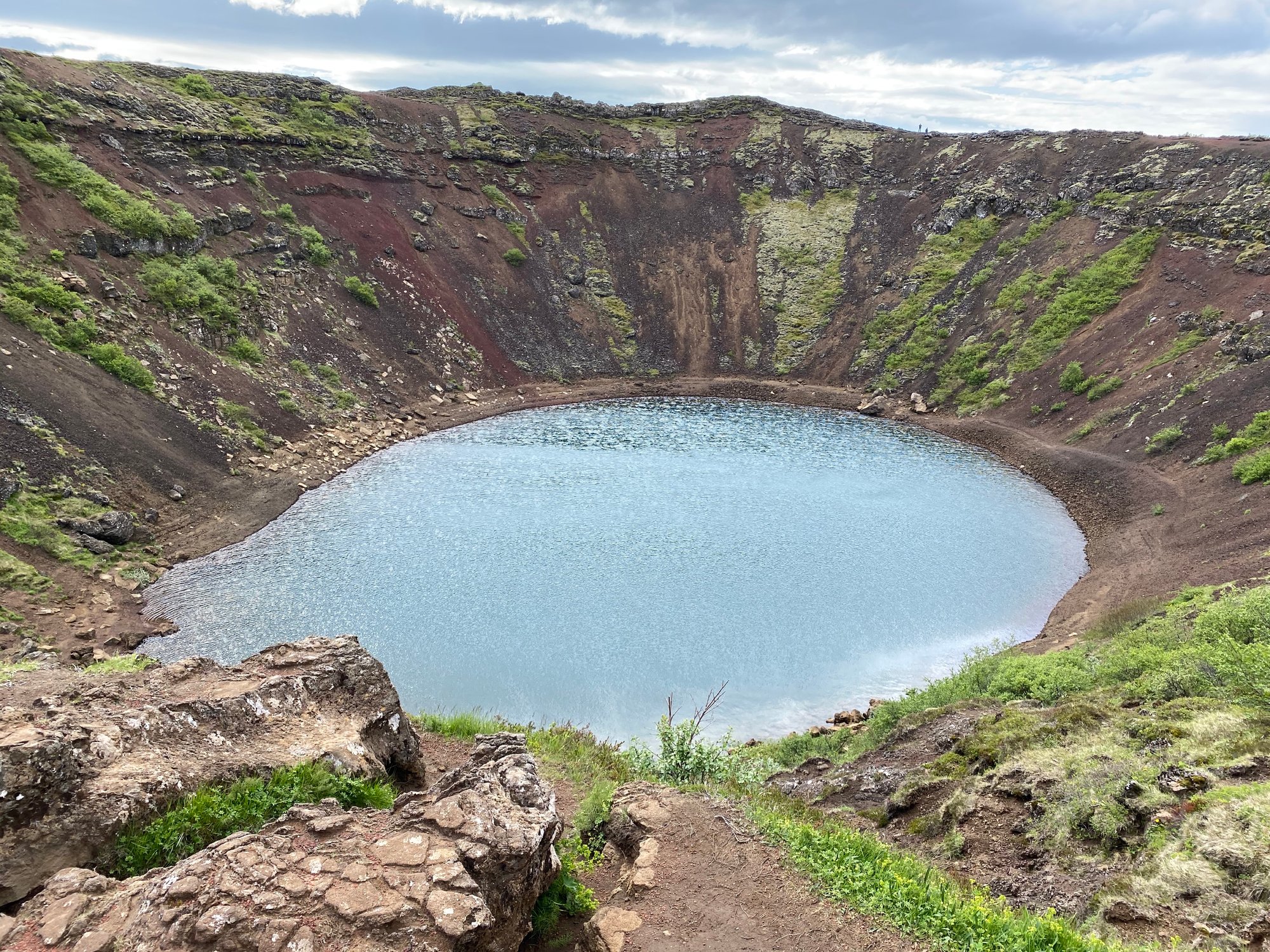 Ook de kerid krater is een tussenstop op je route meer dan waard. De krater is maar liefst 55 meter diep en gevuld met felblauw water. Het water steekt mooi af tegen de roodbruine kraterwand en het groene mos. De krater ligt vlak langs de doorgaande weg en is dus makkelijk te bezoeken. Reserveer zeker wat tijd om een rondje om de krater te lopen. Dan zie je deze explosiekrater vanuit alle kanten! Je kunt ook via een trap de krater in wandelen. Al met al heb je een half uur tot een uurtje nodig bij deze highlight.