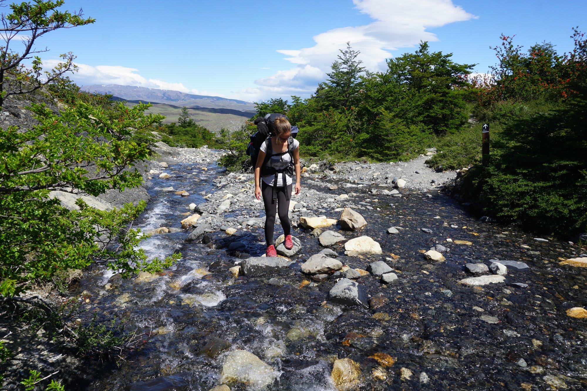 Na 2,5 uur hiken bereiken we camping Italiano. Tijd om even te rusten, want het moeilijkste deel van vandaag begint nu pas. Het pad naar het Britanico uitkijkpunt is slechts 5,5 kilometer lang, maar je doet er volgens de kaart van het nationaal park toch 3 uur over... Je moet namelijk bijna 600 meter klimmen! Het is dezelfde weg heen & terug, wat betekent dat we onze grote backpacks bij de camping achter kunnen laten. Dat scheelt in ieder geval iets!