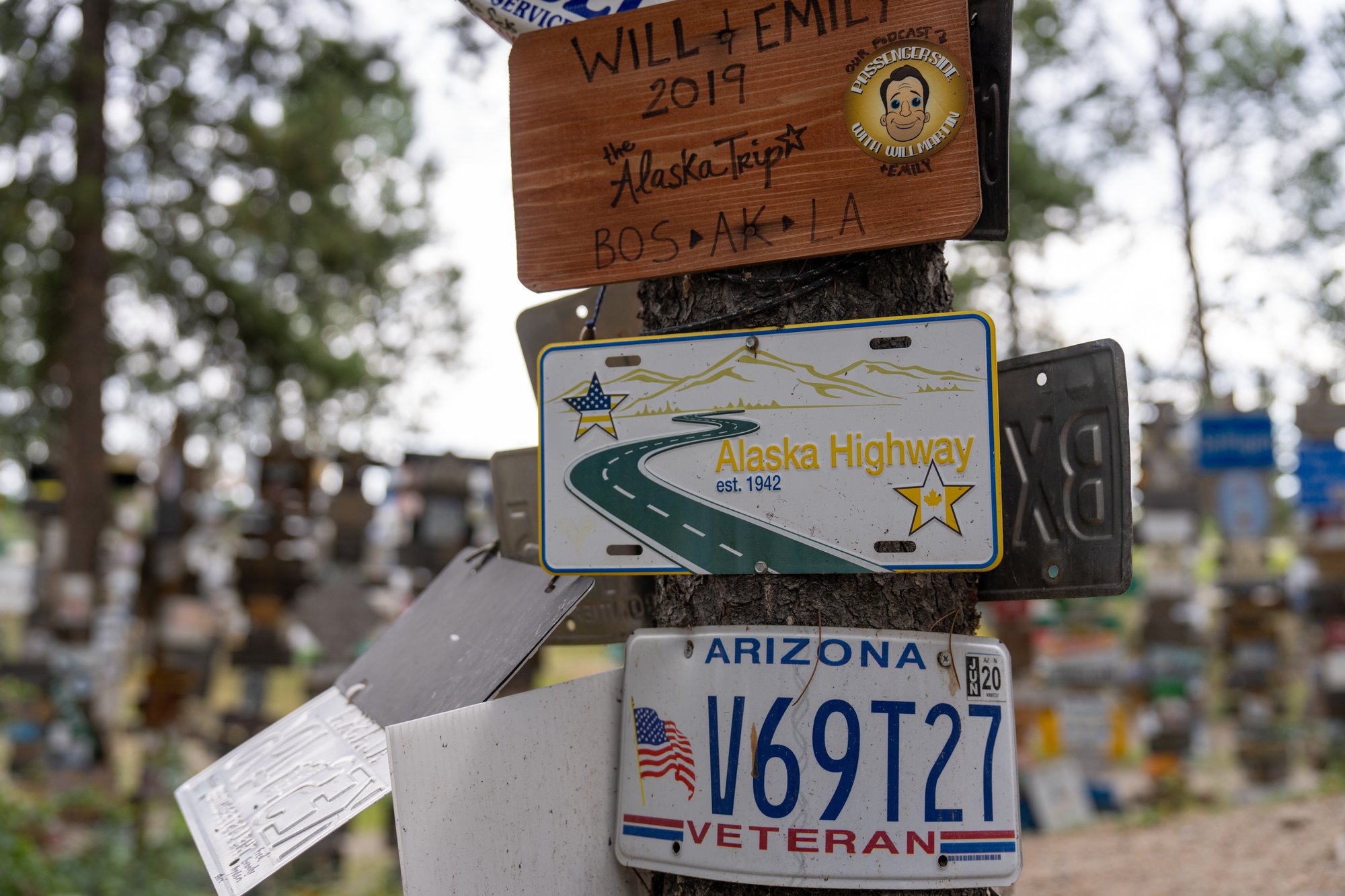Het is zeker de moeite om een uurtje te dwalen door dit bos van heimwee en euforie. Van overal op de wereld zijn mensen naar Watson Lake gekomen voor het Signpost Forest. Ieder met hun eigen redenen. Sommigen waren ver van huis, anderen helemaal niet zo. Al die bordjes laten je voelen hoe reizen mensen met elkaar verbindt. Een mooie plek!