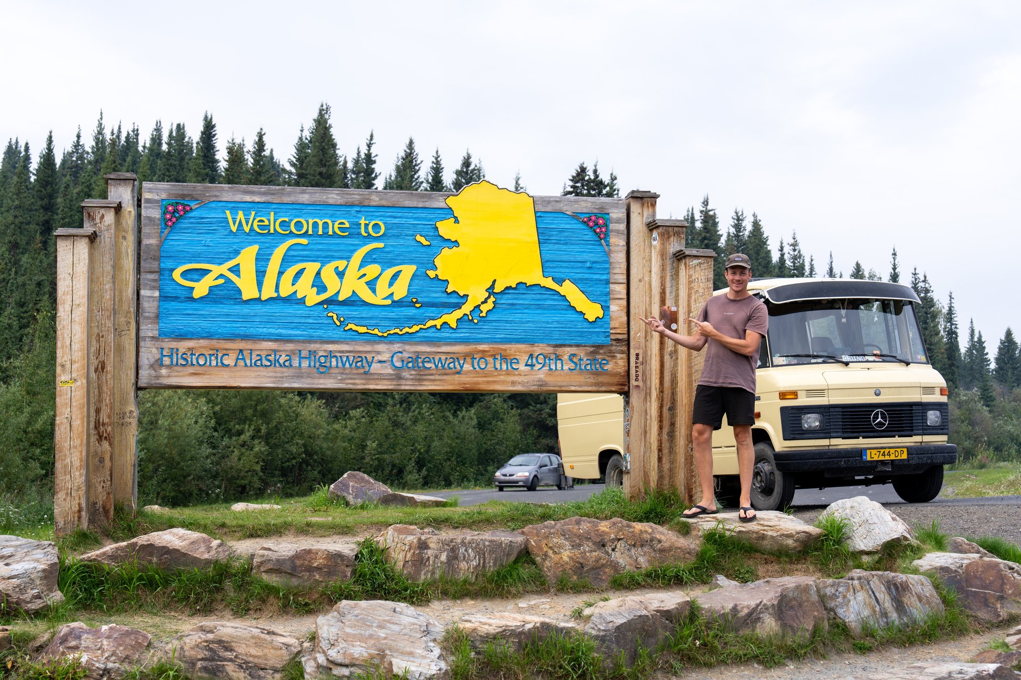 Maar dan… na bijna 1.900 kilometer over de Alaska Highway is het zover. We zijn bij de grens! Natuurlijk stoppen we bij het ‘Welcome to Alaska’ bord en na een soepele grensovergang zoeken we een fijne wildkampeerplek op om dit memorabele moment te vieren. We hebben hier onze hele reis naartoe gewerkt. Het ging niet zonder slag of stoot, maar we hebben doorgezet. Bruno heeft 26.000 kilometer over Noord-Amerikaanse wegen getuft. We zijn apetrots!