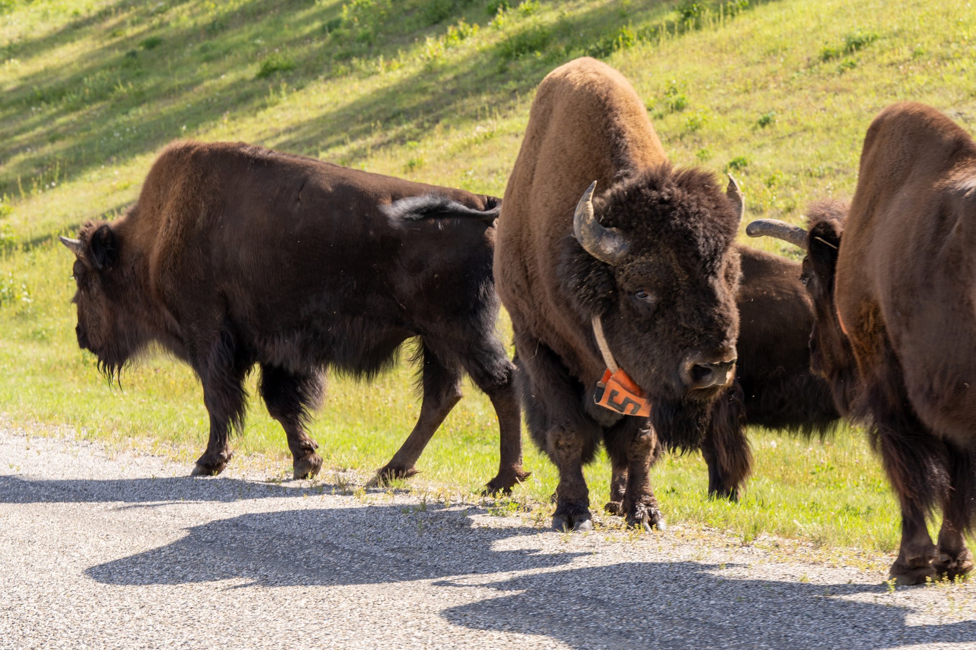 De laatste 100 kilometer voor Watson Lake - het volgende stadje op de route - staan in het teken van bizons. Op dit deel van de route zien we ze regelmatig, soms heel dicht bij de weg. We hebben in Yellowstone en Grand Teton ook al veel bizons gezien, dus het is niet nieuw, maar het blijft tof om deze gigantische beesten tegen te komen.