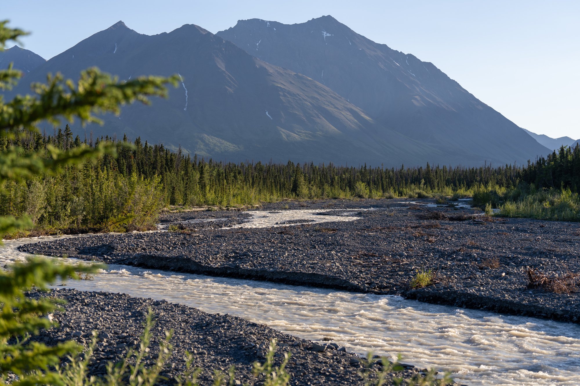 De volgende dag rijden we het laatste deel van de Alaska Highway. We komen door Tok, het eerste plaatsje in Alaska met wat faciliteiten, maar verder zien we vooral bossen en rivieren. Het is helaas bewolkt en regenachtig vandaag, waardoor we niet ver kunnen kijken en we geen idee hebben van de hoge bergen die in onze buurt moeten zijn. Jammer, maar je kunt niet altijd 6 gooien. ;-)