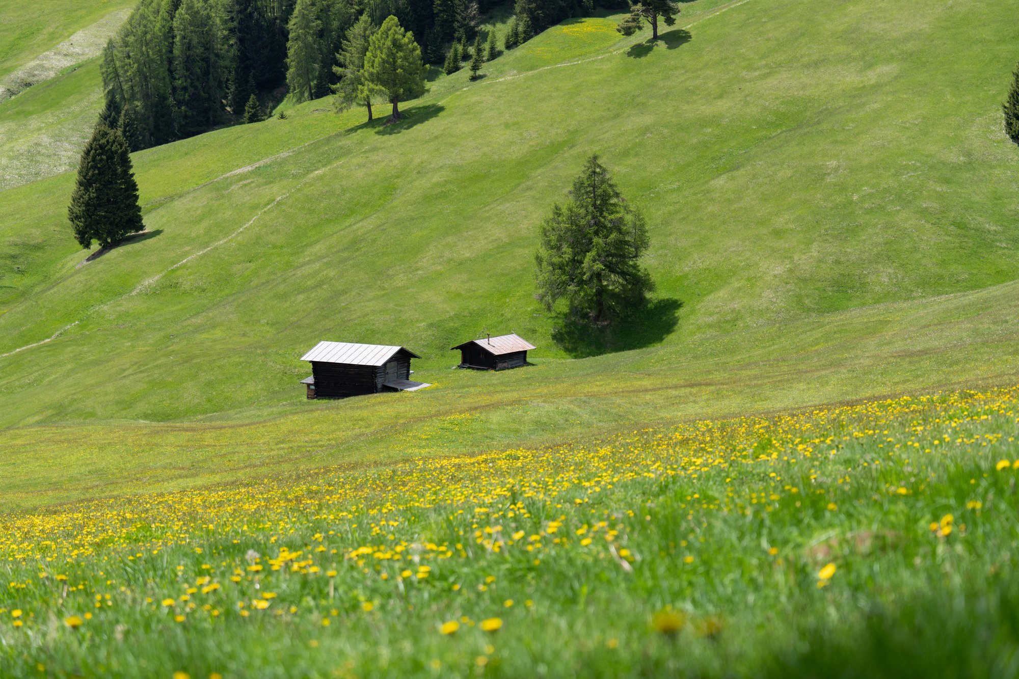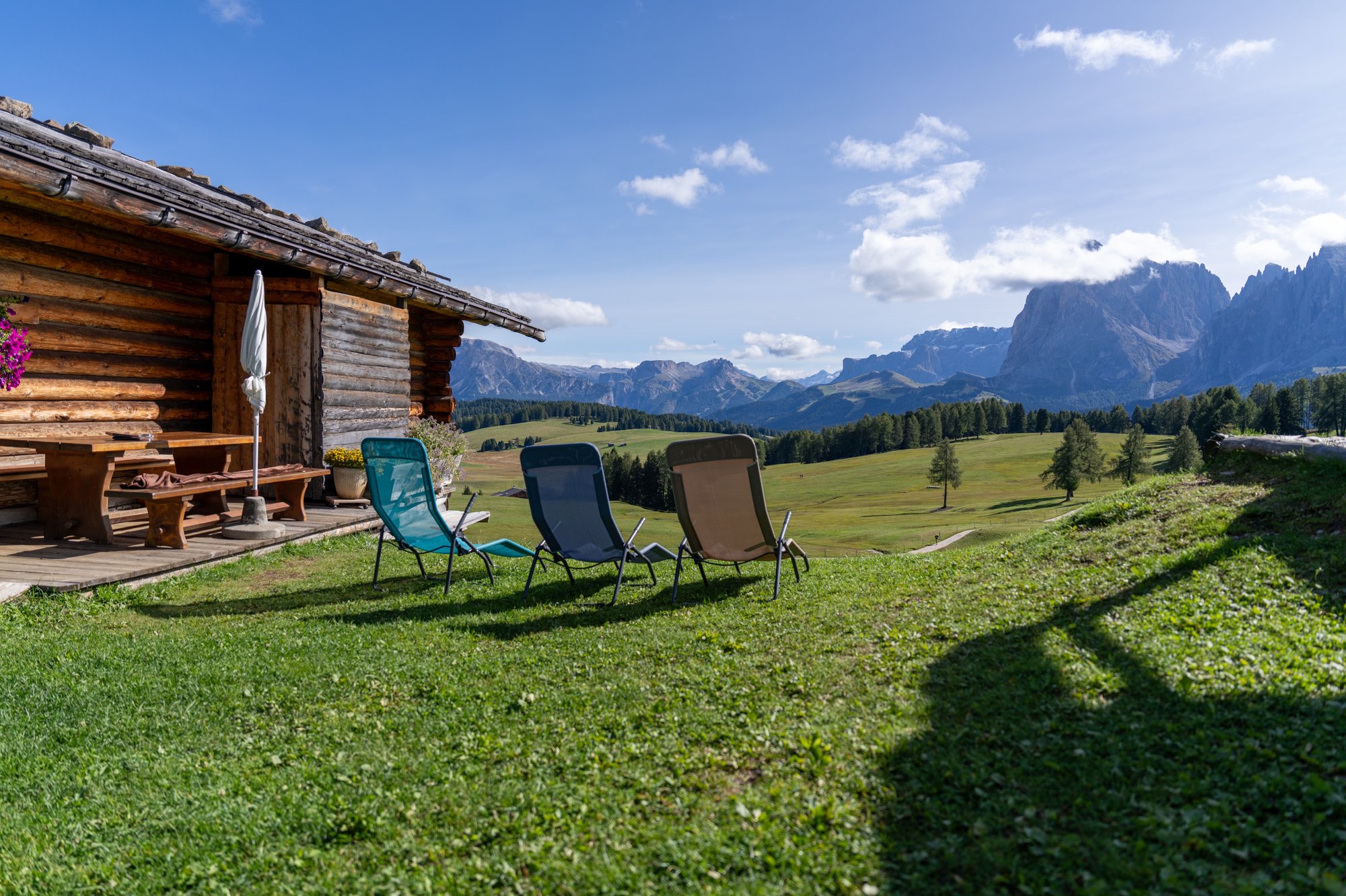 Idyllischer dan op Alpe di Siusi wordt het niet zo snel. Verspreid over de enorme bergweide staan her en der houten hutjes, om je heen torenen de kale, grijze rotsen ver boven de weilanden en bossen uit en in de tientallen berghutten vind je levendigheid en goed eten en drinken. Een fijne combinatie! ;-)