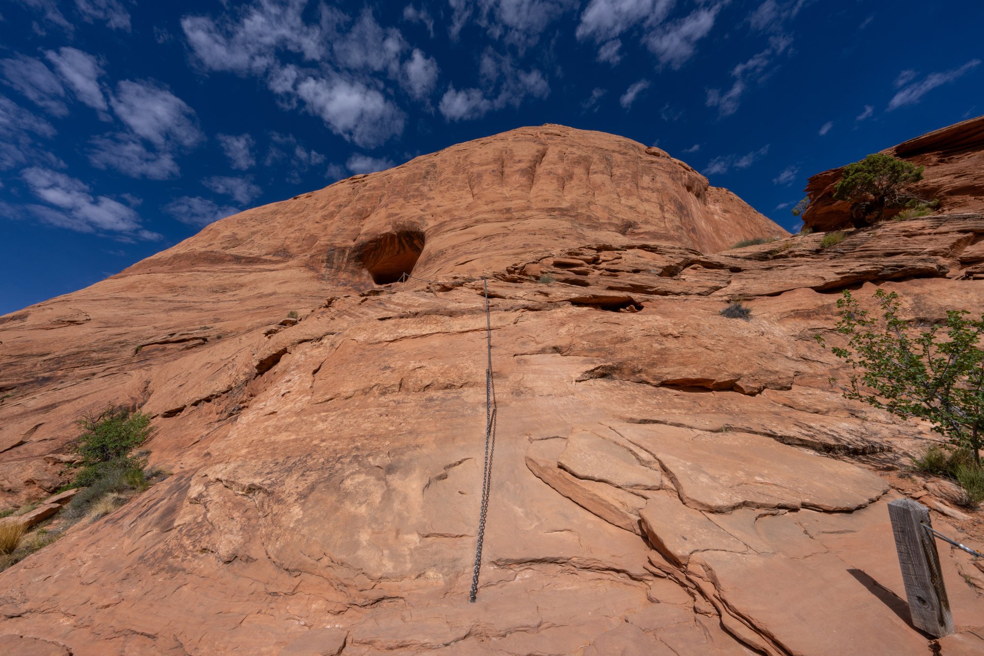 Het enige wat je moet doen is er ongeveer 45 minuten naartoe hiken. Tijdens deze hike moet je wat klimmen en er zijn wat steile stukjes, maar op die delen word je ondersteund door ladders en een stalen ketting. Het is absoluut een hike die voor iedereen te doen is en het is meer dan de moeite waard. Als wij zouden moeten kiezen tussen een bezoek aan Arches National Park of enkel Corona Arch, dan kiezen wij het laatste. Dat zegt genoeg, toch?!