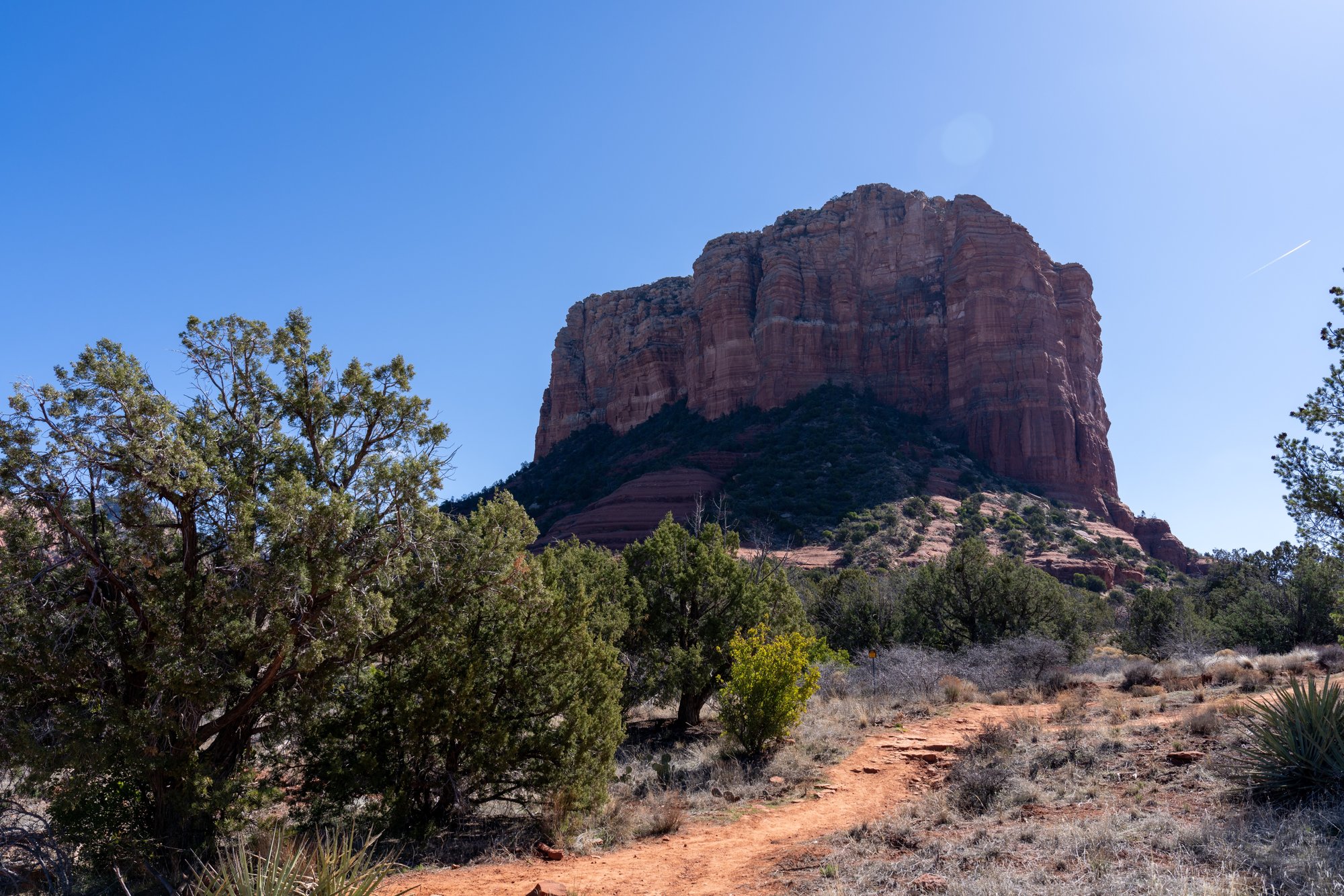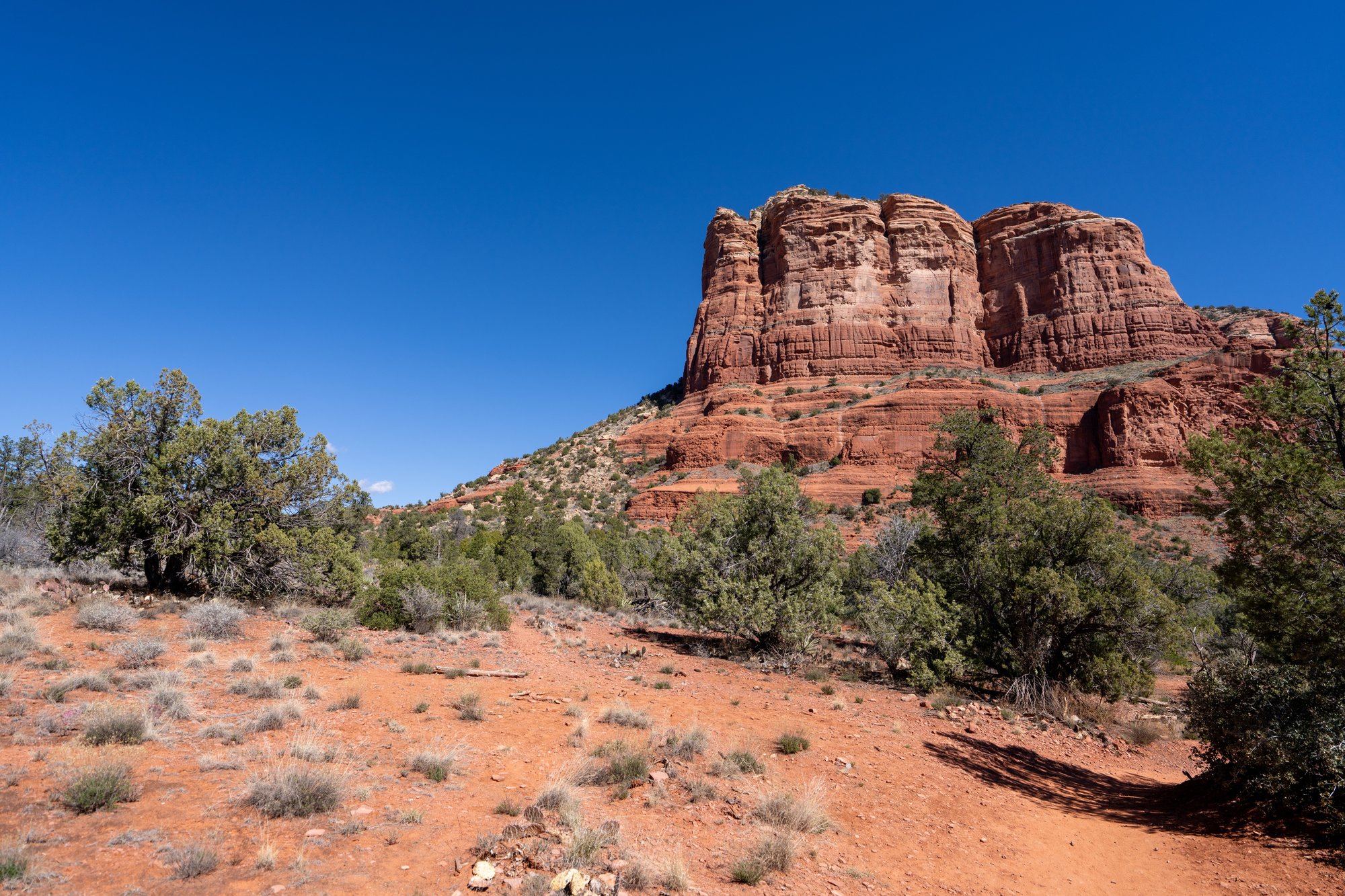 We kiezen ervoor om onze krachten te sparen - er staan nog genoeg Sedona hikes op onze planning! - en het pad te volgen dat tussen Bell Rock en Courthouse Butte loopt. Dat blijkt een goede keuze, want het is juist leuk om tussen beide iconen te lopen en zowel links als rechts van je iets moois te zien.