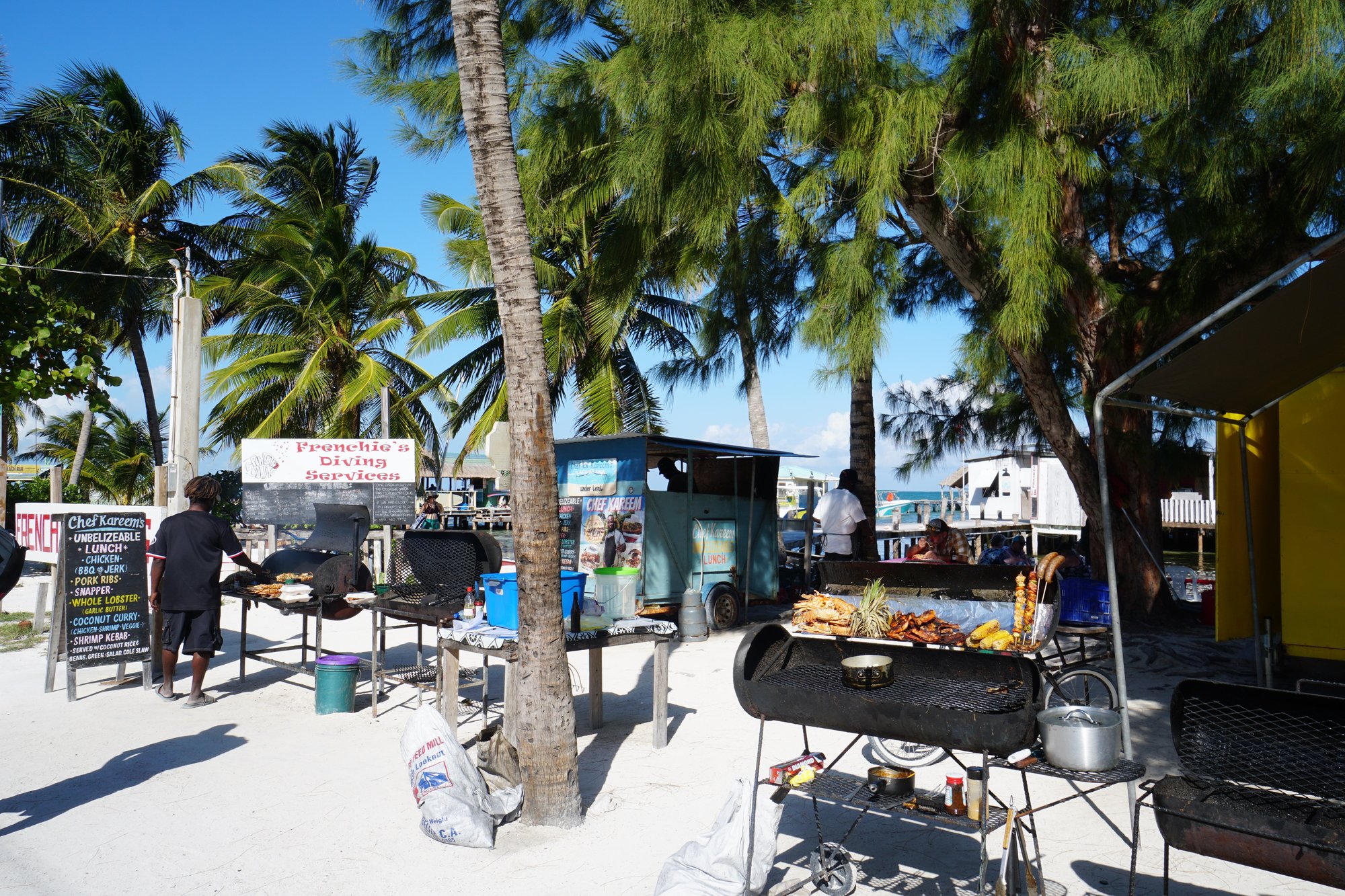 Je kunt het bijna bij elk restaurant op Caye Caulker krijgen, maar wij kiezen voor het straattentje van Chef Kareem. Hier zie je de kreeften vanuit de zee de BBQ en vervolgens je bord op gaan. Smullen!