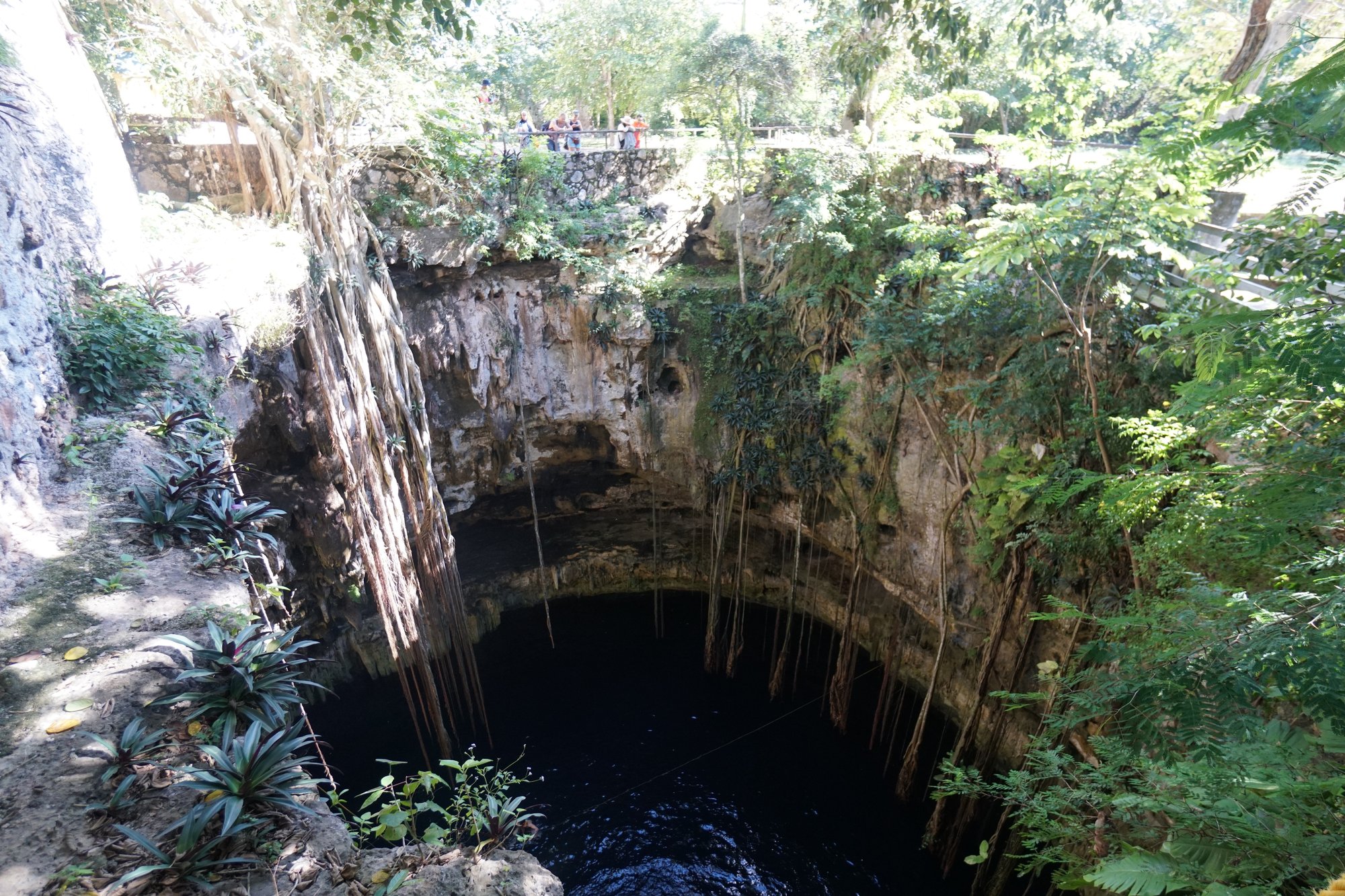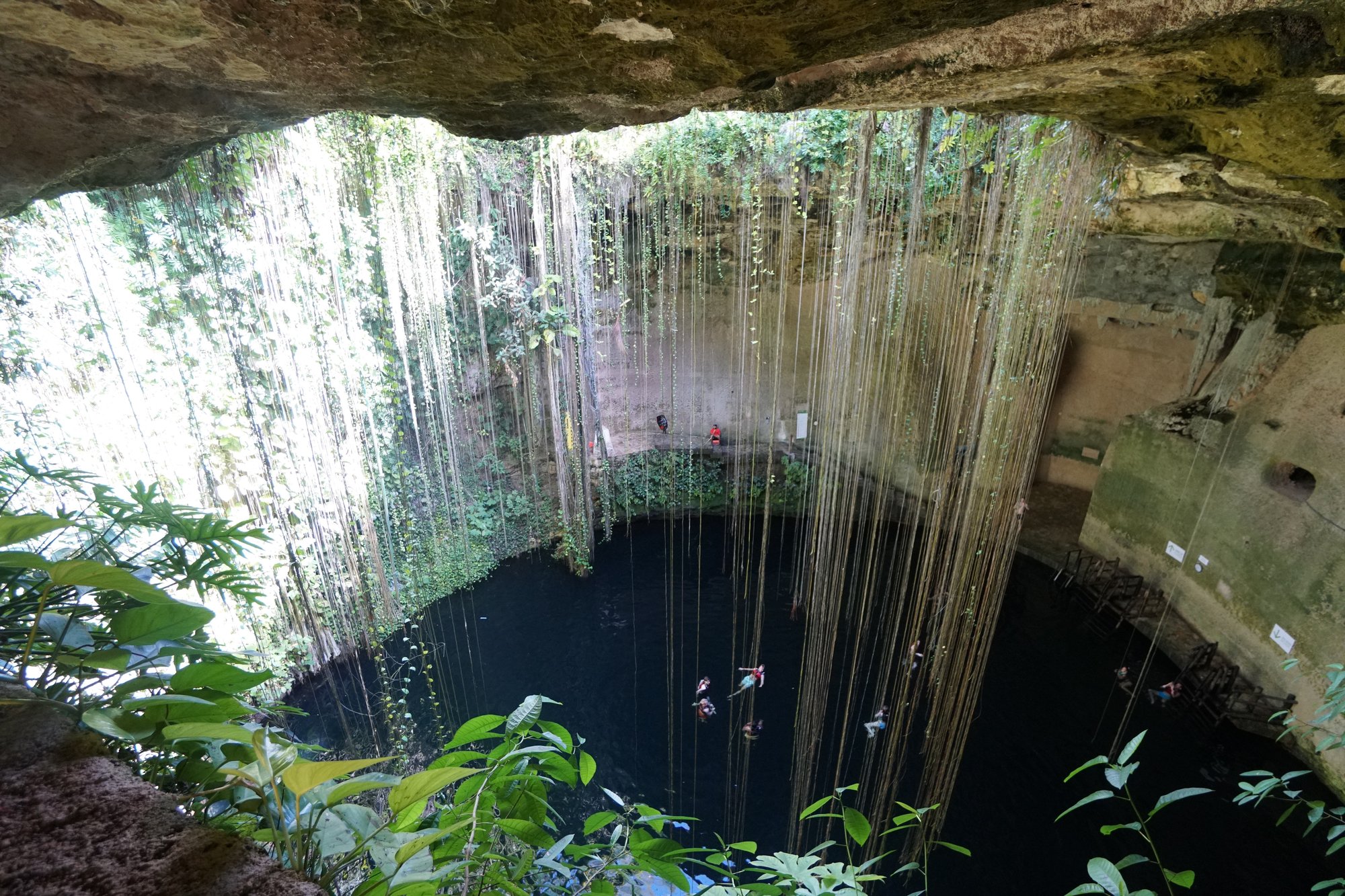 Of het terecht is dat Cenote Ik-Kil zo populair is? Mwah. In de basis is het een mooie cenote, vooral door de vegetatie die tientallen meters lang is en als een groen gordijn in de cenote hangt. Toch vinden wij er teveel aan geknutseld. Het is op veel plaatsen niet meer natuurlijk en daarmee meer een mooie zwemlocatie geworden dan een puur natuurverschijnsel. Wij vinden dat wat minder. ;-)