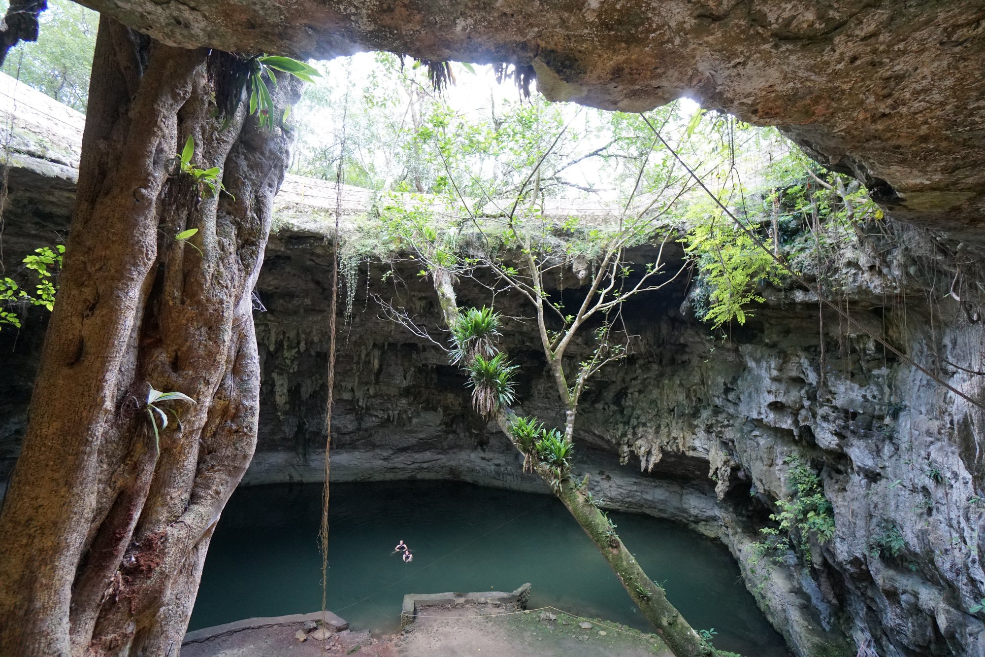 Op hetzelfde complex als Cenote Suytun ligt Cenote Kaapeh. Deze cenote is veel natuurlijker, rustiger en veel groener door de grote opening. Een groene oase vergeleken met het donkere en overvolle Cenote Suytun!