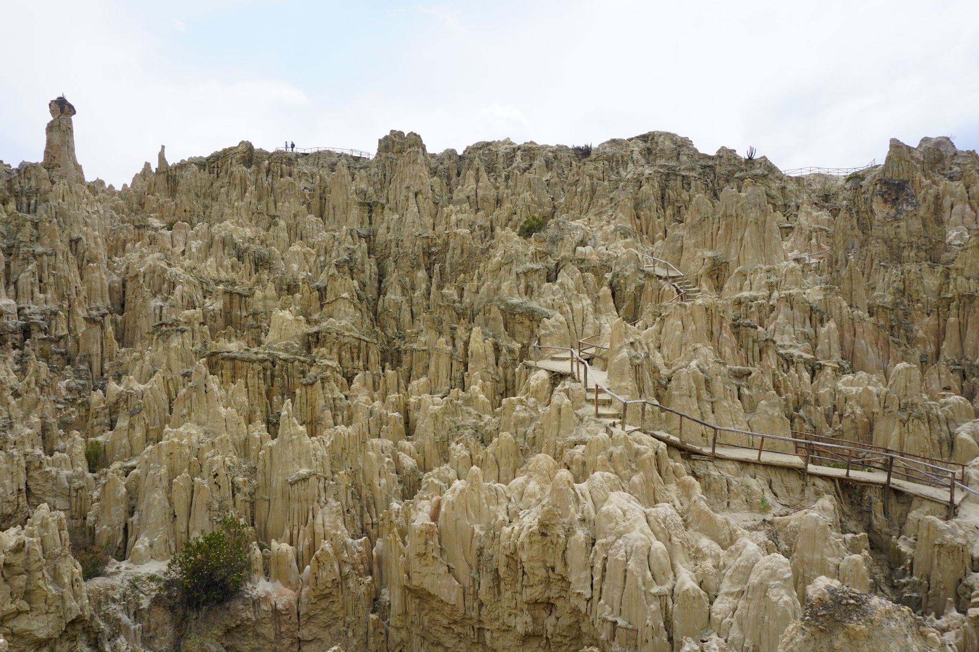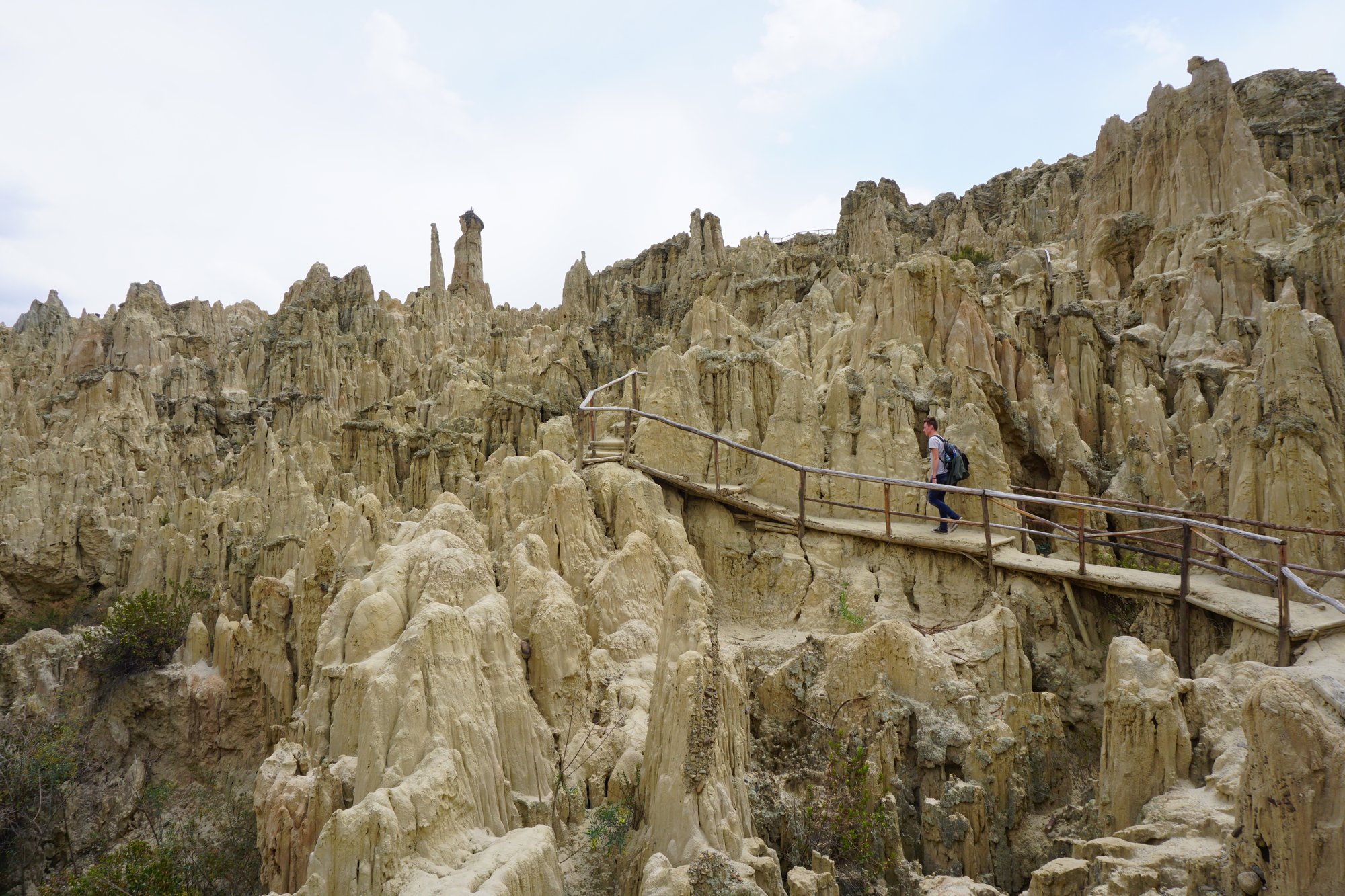 Net buiten de stad ligt een bizar maanlandschap: Valle de la Luna. Het is een leuke plek om te bezoeken als je La Paz en de omgeving verkent. Ga niet met een (dure) tour mee, maar pak de lokale bus of een colectivo vanaf het San Francisco plein. Voor zo'n 30 eurocent ben je dan op je bestemming!