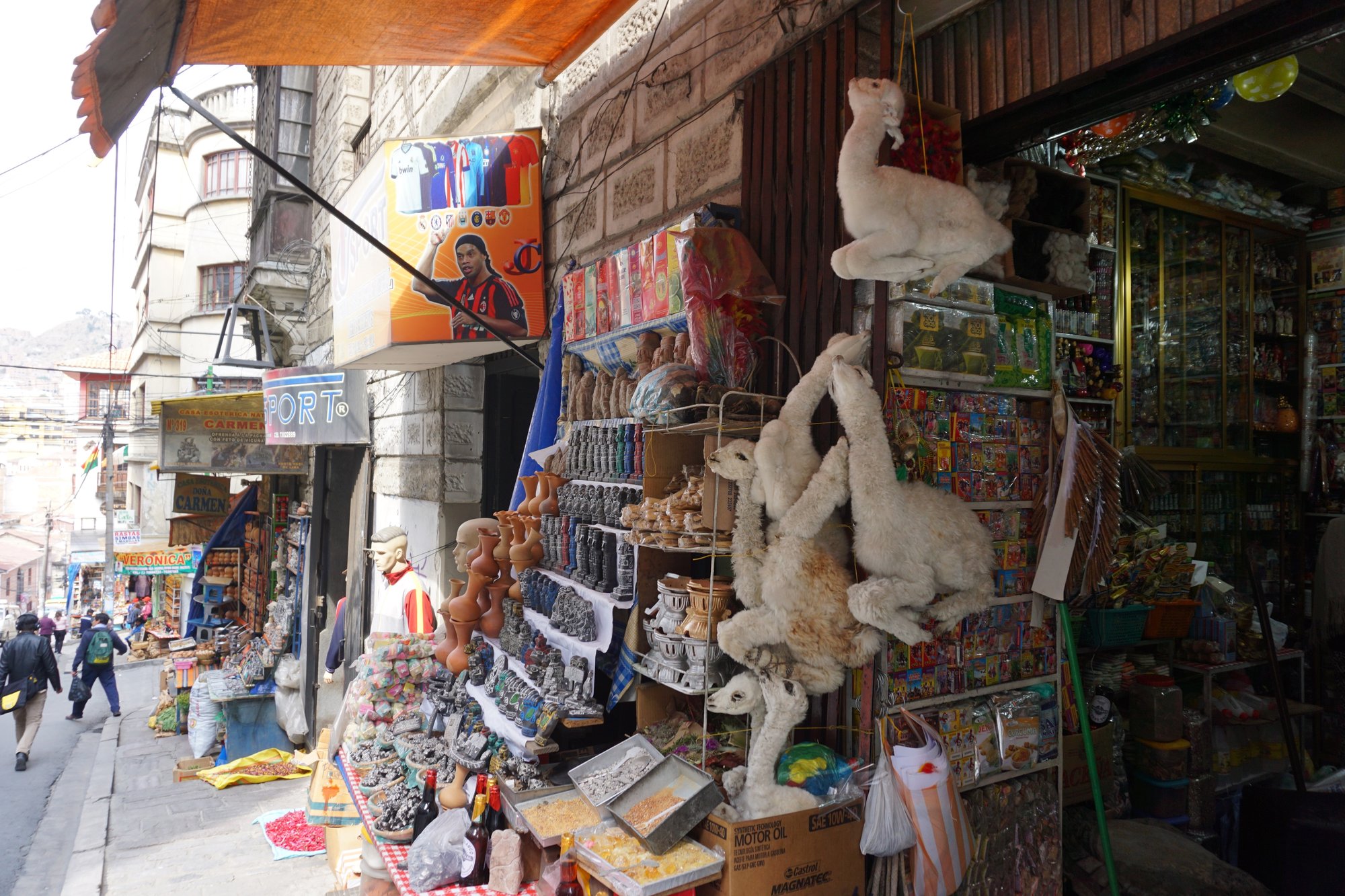 La Paz staat bekend om haar markten en kraampjes op straat. Waar je ook loopt in de stad, de voetpaden en zijkanten van de weg worden ingenomen door kleedjes en stalletjes met allerlei producten. Een wel heel excentrieke markt is de heksenmarkt, ofwel Mercado de de las Brujas. Hier kun je bijzondere drankjes kopen, zie je gedroogde lama foetussen hangen en van sommige producten hadden we simpelweg geen idee wat het was. ;-) Ook als je 'gewoon' op zoek bent naar een nieuwe tas, trui of muts zit je op deze markt goed!