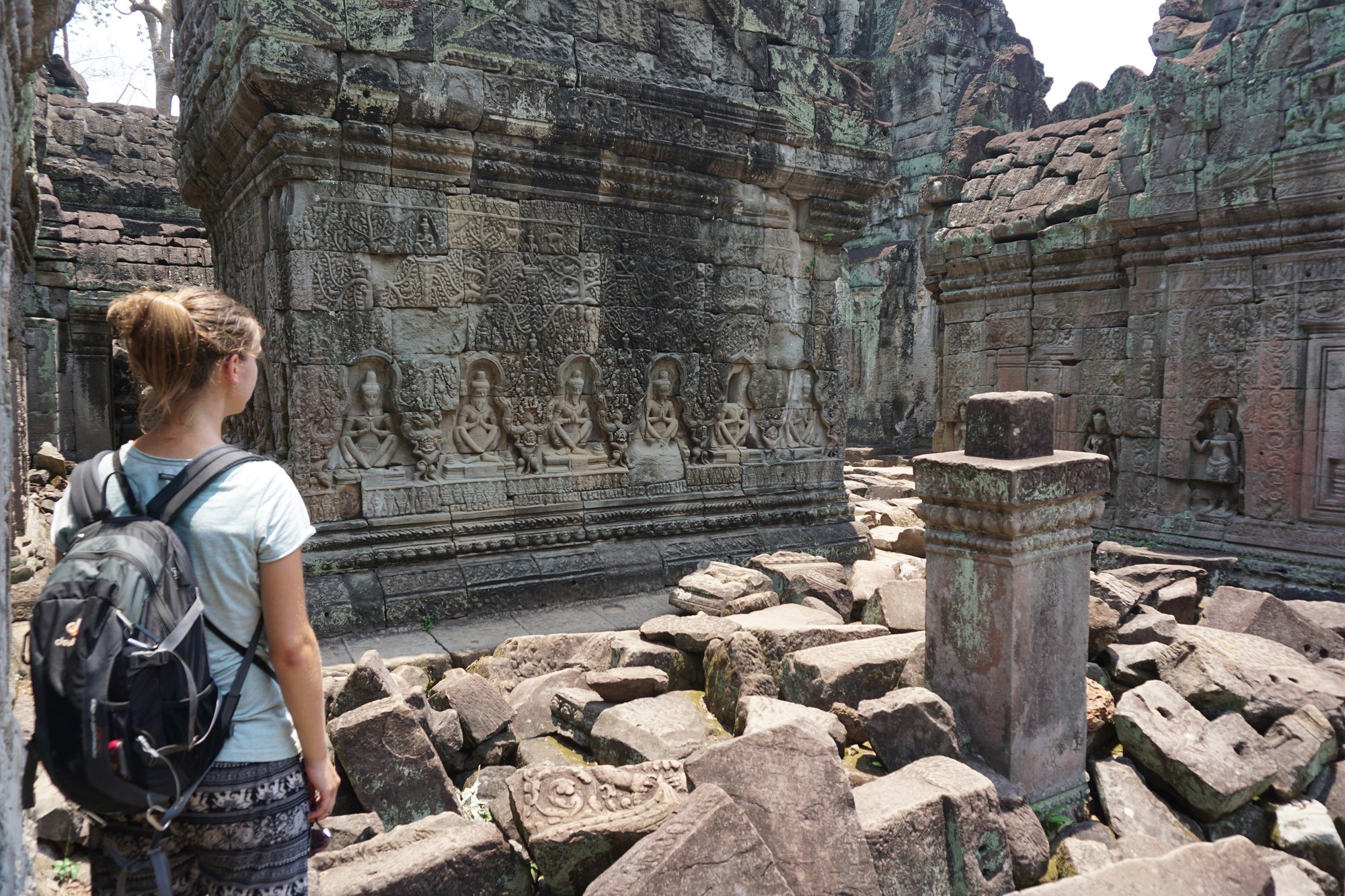 - Angkor is een heilige plek voor de Cambodjanen en daarom is het belangrijk om je respectvol te kleden. Bij mannen maakt het meestal niet zoveel uit, maar voor vrouwen geldt dat de schouders en knieën bedekt moeten zijn. Een buiktruitje zou ik ook voor een ander moment bewaren. ;-) Wij hebben nergens gezien dat dit echt gecontroleerd werd, maar uit respect naar de bevolking zou ik me er toch aan houden.