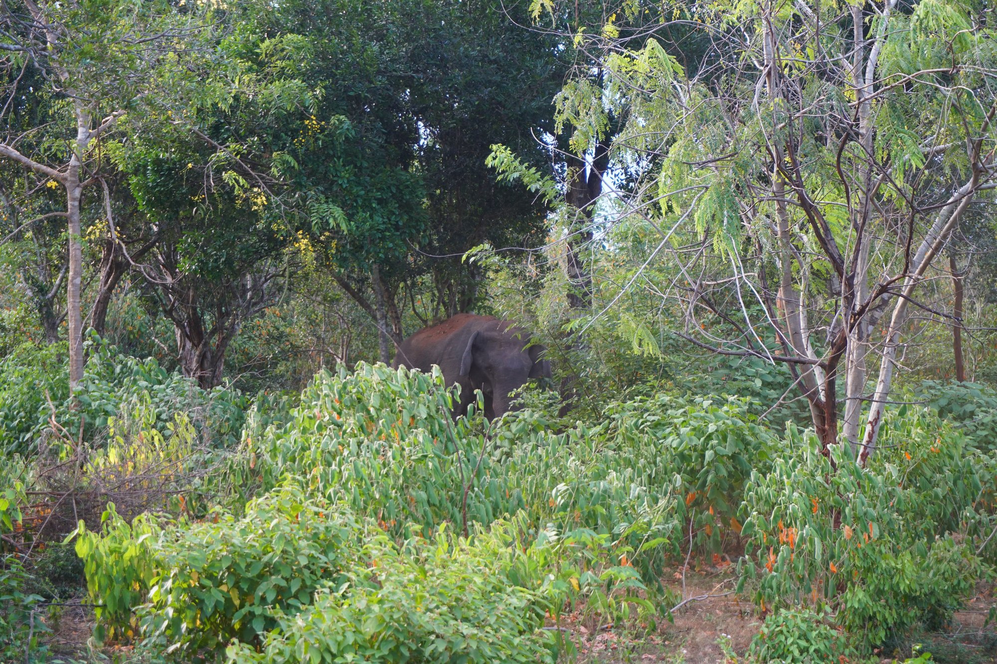 Wij hadden 2 nachten geboekt bij Yala Avian Eye Safari. Deze homestay ligt zo goed als ín het nationaal park! We worden ontvangen door Bhagya en zijn familie. Wat een vriendelijke, open mensen en zo zorgzaam. Naast op safari gaan is er hier helemaal niks te doen, maar dat lost Bhagya goed op. Aan het einde van de middag neemt hij ons mee in zijn jeep naar één van de plantages in de buurt. Wilde olifanten komen vrijwel dagelijks vanuit het park naar de suikerrietvelden om hun buik lekker vol te eten. Dat vinden de locals van wie de plantages zijn natuurlijk helemaal niet fijn, want de olifanten eten letterlijk hun inkomsten op!