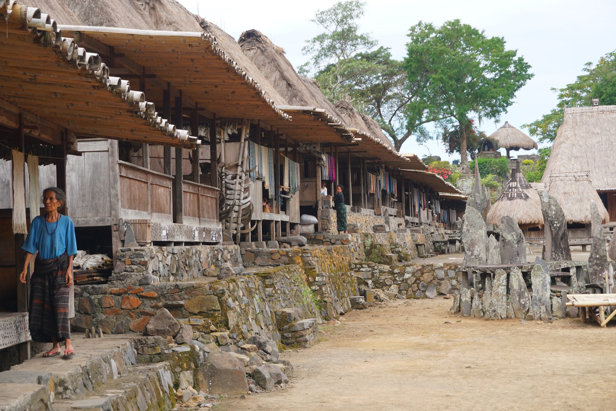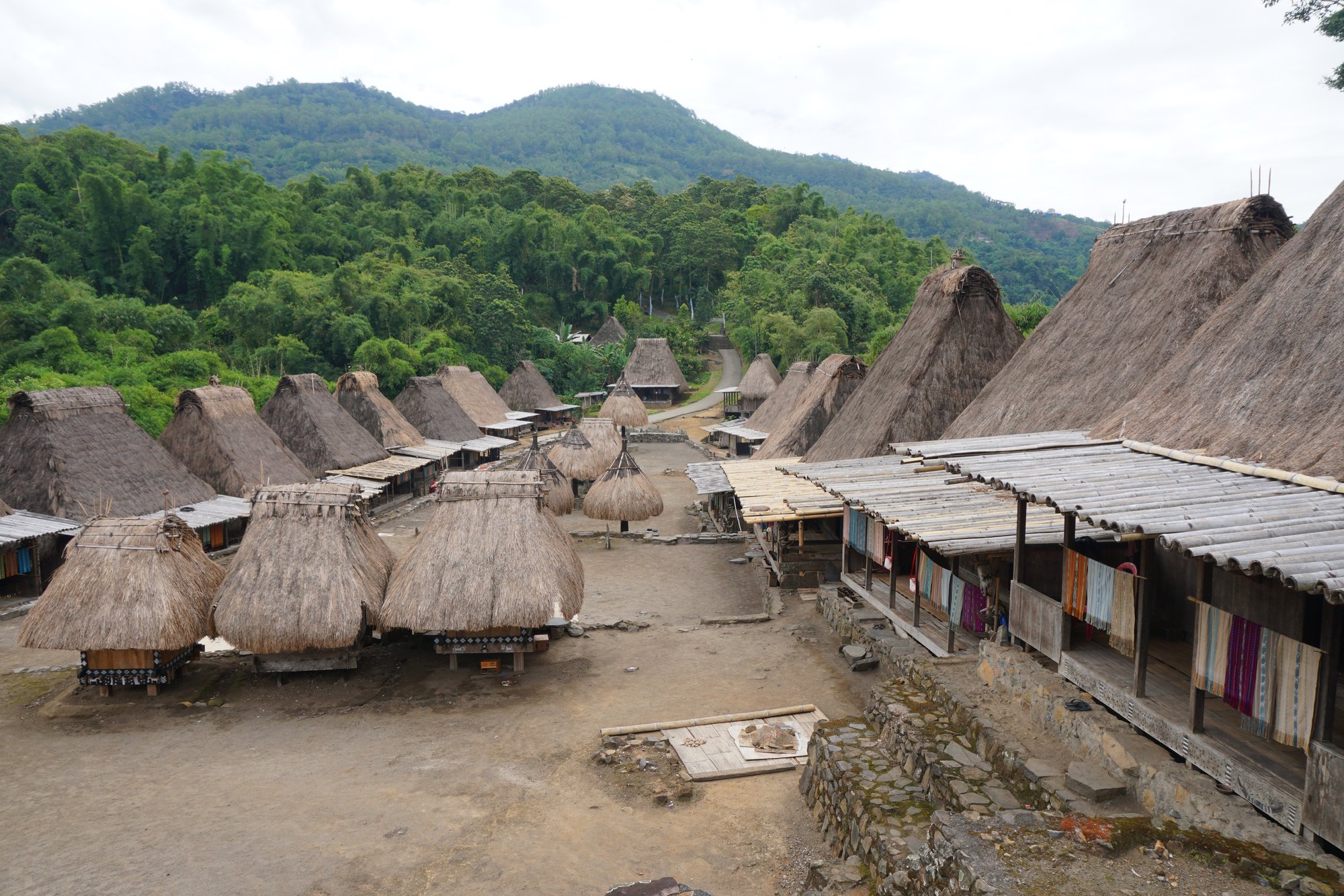 In de omgeving vind je meerdere dorpen waar de Ngada bevolking nog leeft op traditionele wijze. Nu zijn wij altijd een beetje sceptisch over zulke dorpen, omdat onze ervaring is dat het vaak te toeristisch / commercieel is en er eerder een toneelstukje opgevoerd wordt dan dat je naar het pure, authentieke leven van deze mensen kijkt. Maar in Bajawa geven we het nog een kans: we gaan naar Bena.
