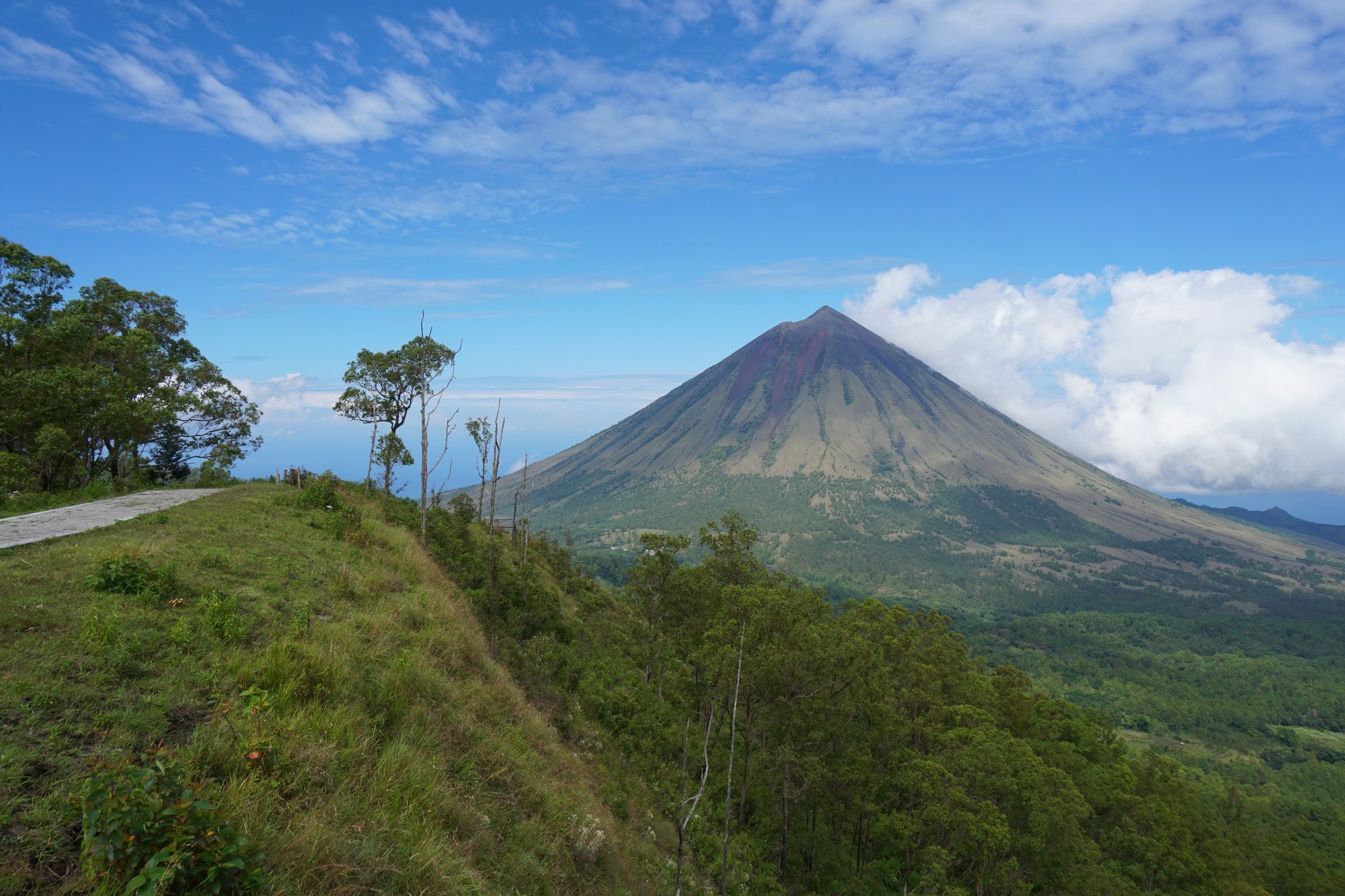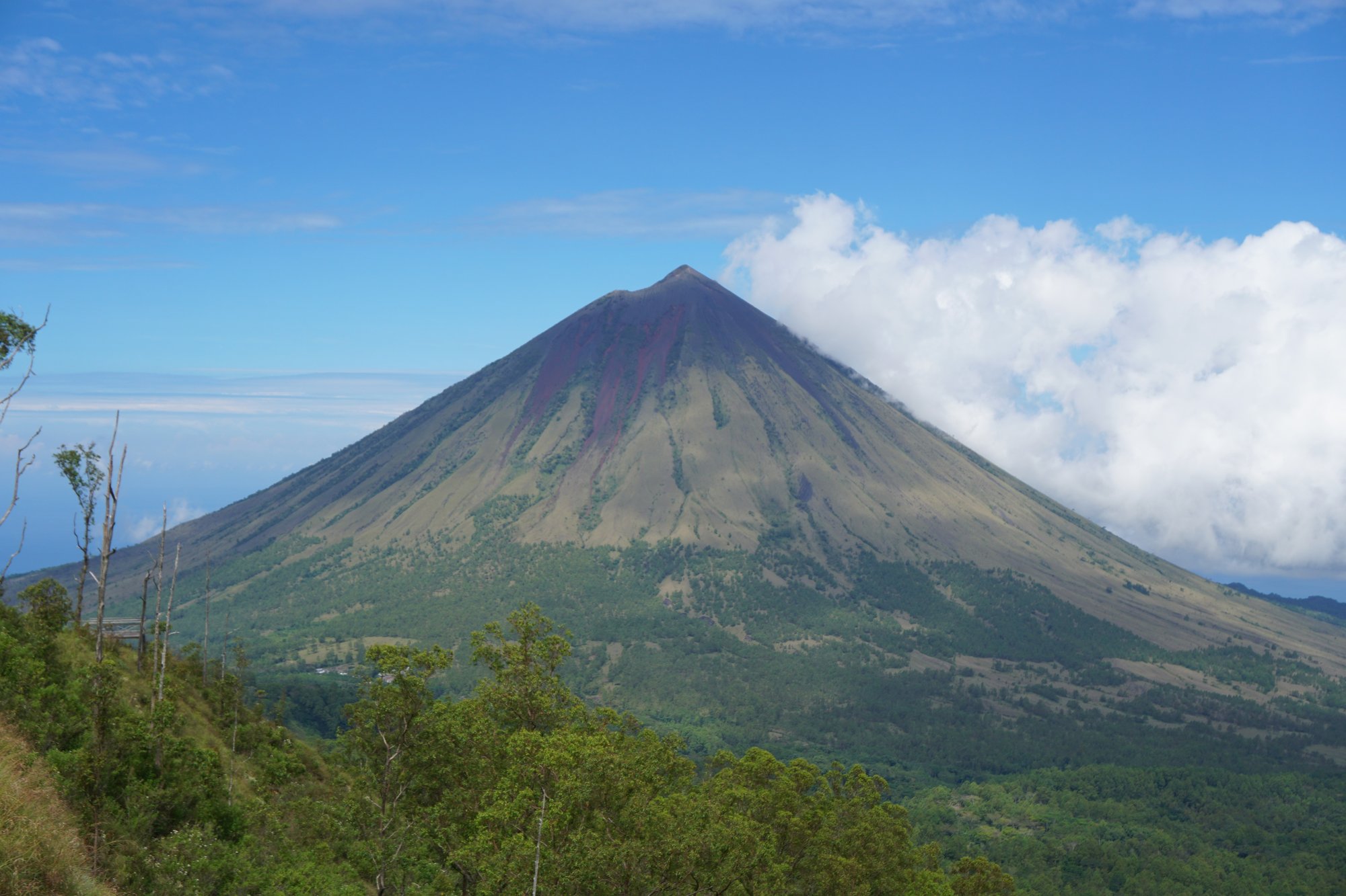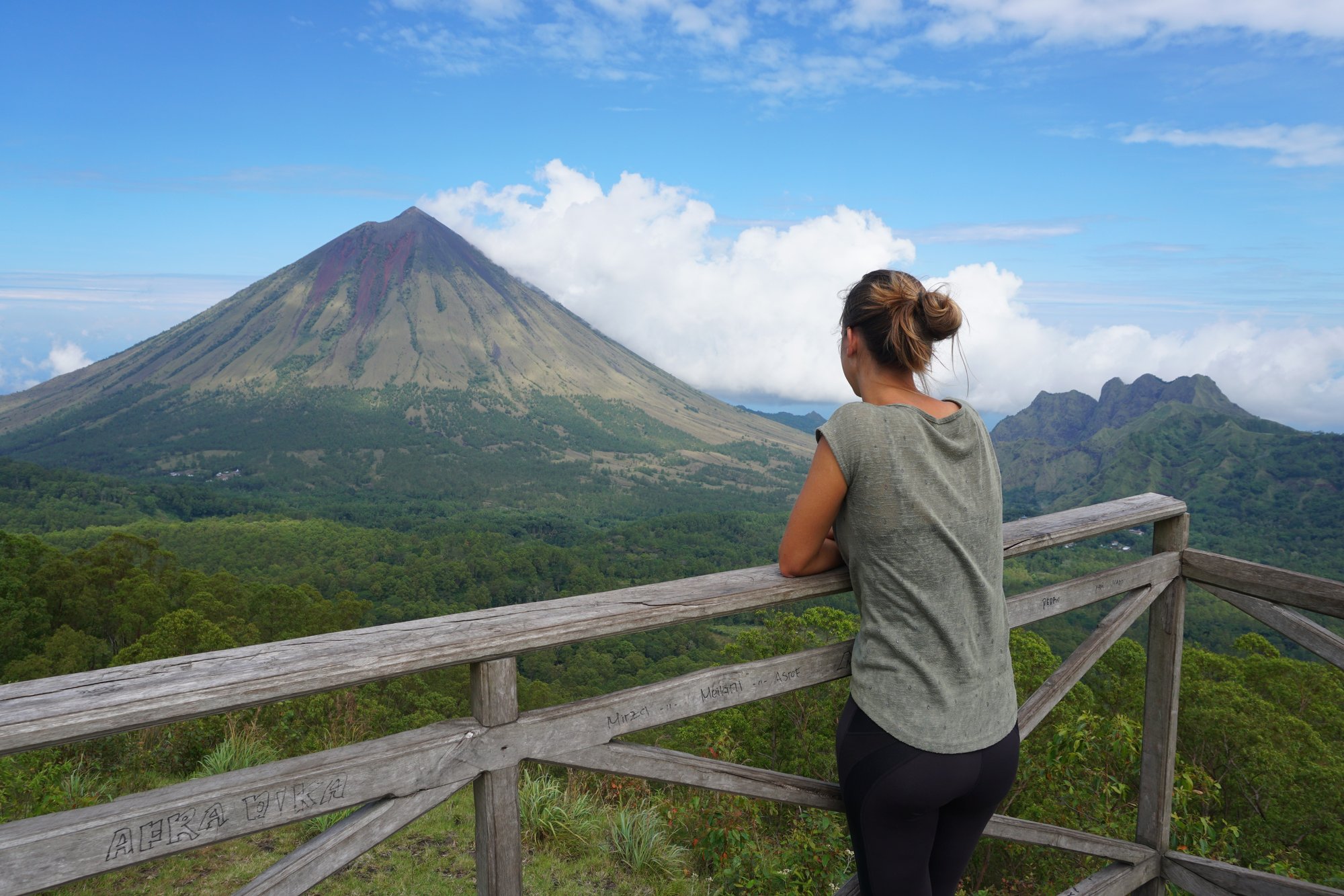 Voor een adembenemend uitzicht over de omgeving én vulkaan Inerie rijden we naar de Wolo Bobo Hill. Na het betalen van een klein bedrag aan entree (20.000 roepia ofwel €1,25 per persoon) volgen we het pad naar het uitzichtpunt. Wauw! Het landschap is groen en bergachtig en af en toe zie je een klein dorpje tussen al het groen liggen. Waar je werkelijk niet omheen kunt is de schoonheid van Mount Inerie. De spitse punt, de verschillende kleuren op de bergwand, echt waanzinnig!