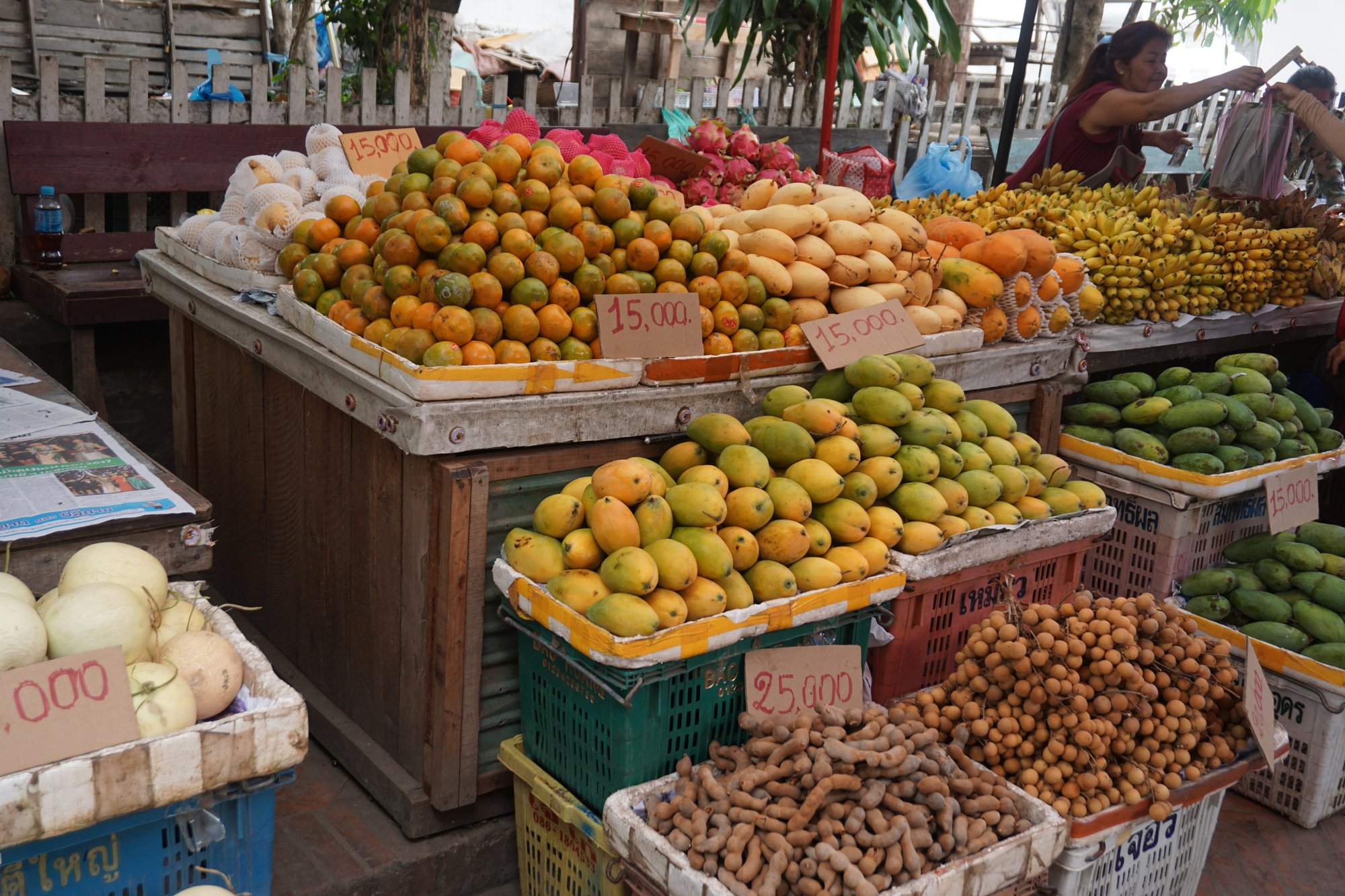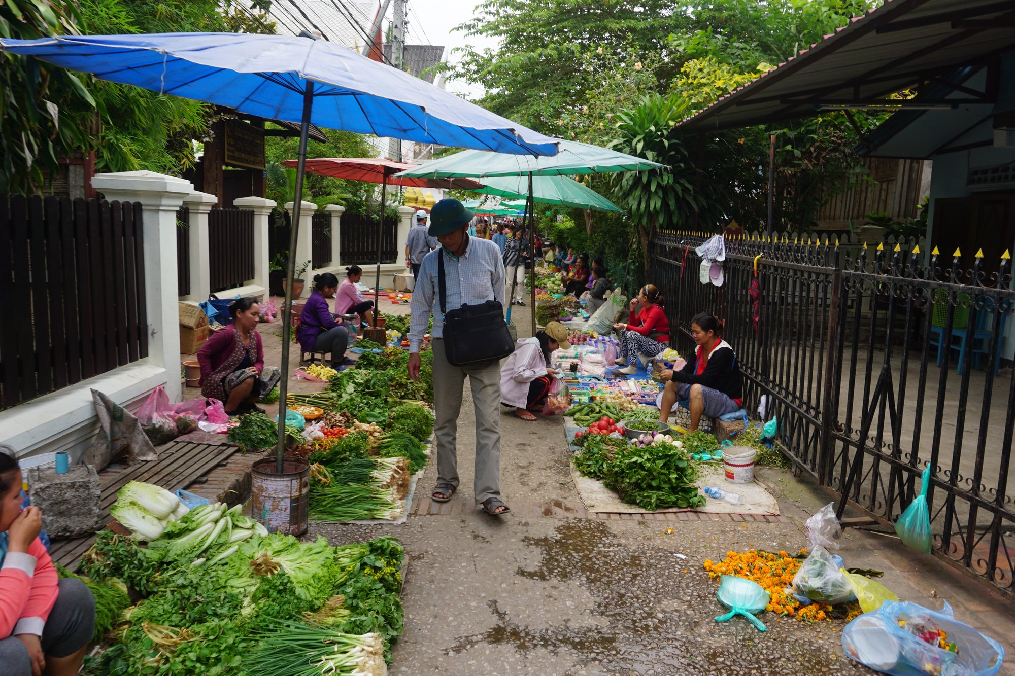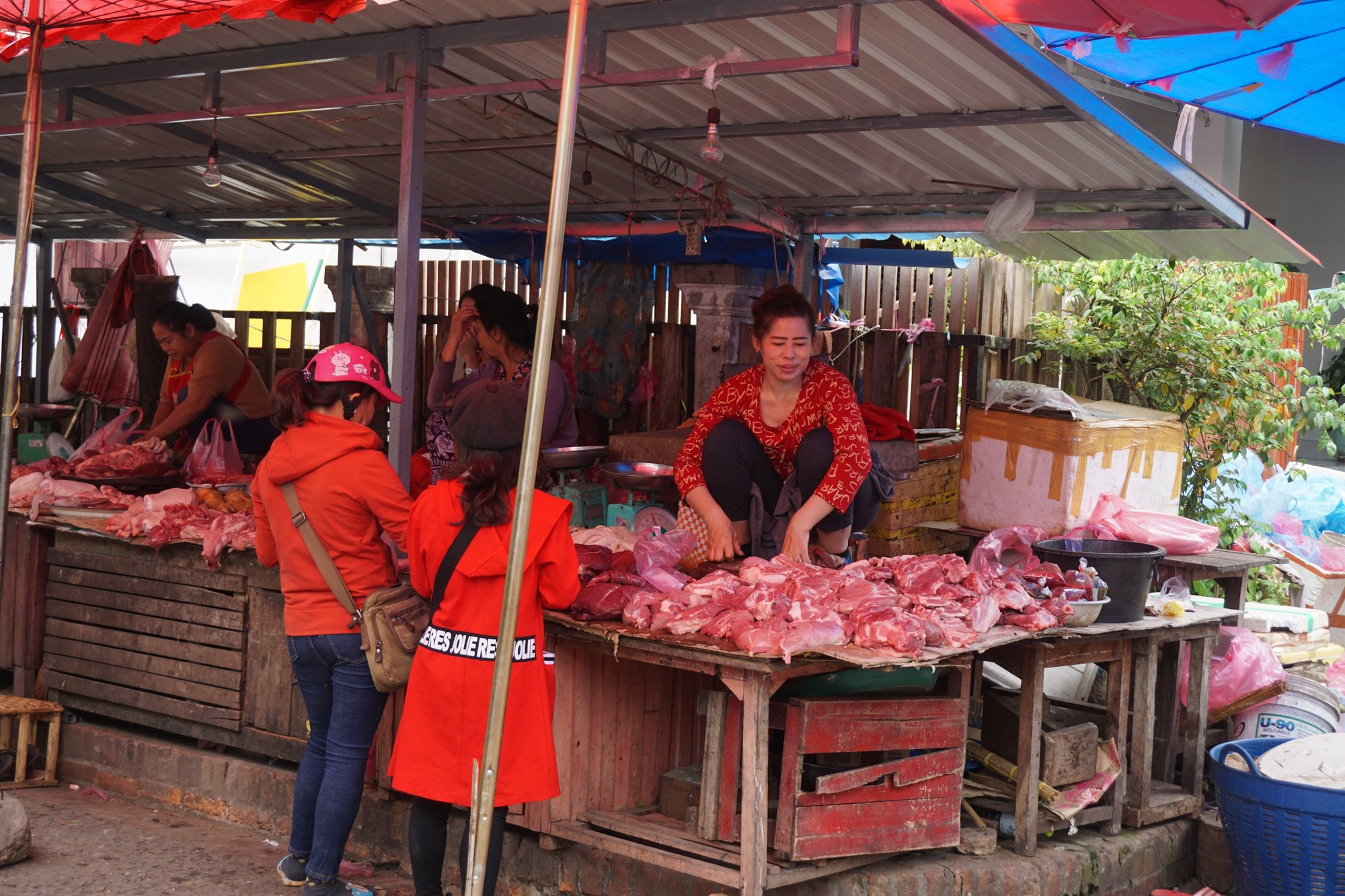 Op de ochtendmarkt van Luang Prabang vind je kleurrijke kraampjes vol fruit en groenten, maar ook enorme vissen en behoorlijke stukken vlees liggen hier uitgestald. Het is een mengelmoes van allerlei geuren en kleuren. Een sterke maag is wel handig voor een wandelingetje over de ochtendmarkt, want het ruikt niet allemaal even fris. ;-) Toch blijft slenteren over zo'n markt in Azië altijd fascinerend vind ik! Kom op tijd, want dan is de markt op haar levendigst.