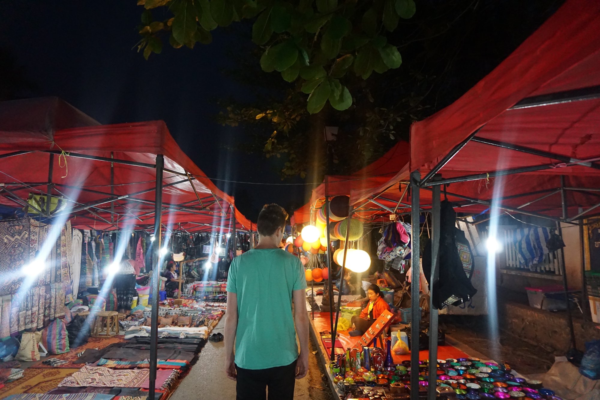 Iedere avond wordt de belangrijkste straat in Luang Prabang - Sisavangvong Road - afgesloten voor verkeer en worden er honderden kraampjes opgebouwd. Als je nog iets nodig hebt tijdens je reis of als je gewoon een leuke souvenir wilt kopen, dan is dit de plek. Zoveel kraampjes, zoveel keuze! Slagen zul je dus altijd wel. :-)