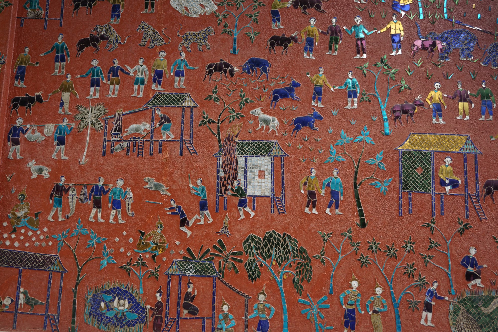 Luang Prabang staat vol met tempels en je zou een hele dag tempel kunnen hoppen, maar misschien vind je dat iets teveel van het goede. ;-) Persoonlijk zijn wij wel fan van tempelruïnes, maar minder van de 'pracht en praal tempels'. In Luang Prabang zijn het vooral tempels in die laatste categorie. Wil je - net als wij - maar één tempel bezoeken in Luang Prabang, dan kun je het beste naar Wat Xieng Thong gaan. De tempel is gebouwd in de 16e eeuw en bijzonder vanwege al het mozaïek op de tempelmuren.