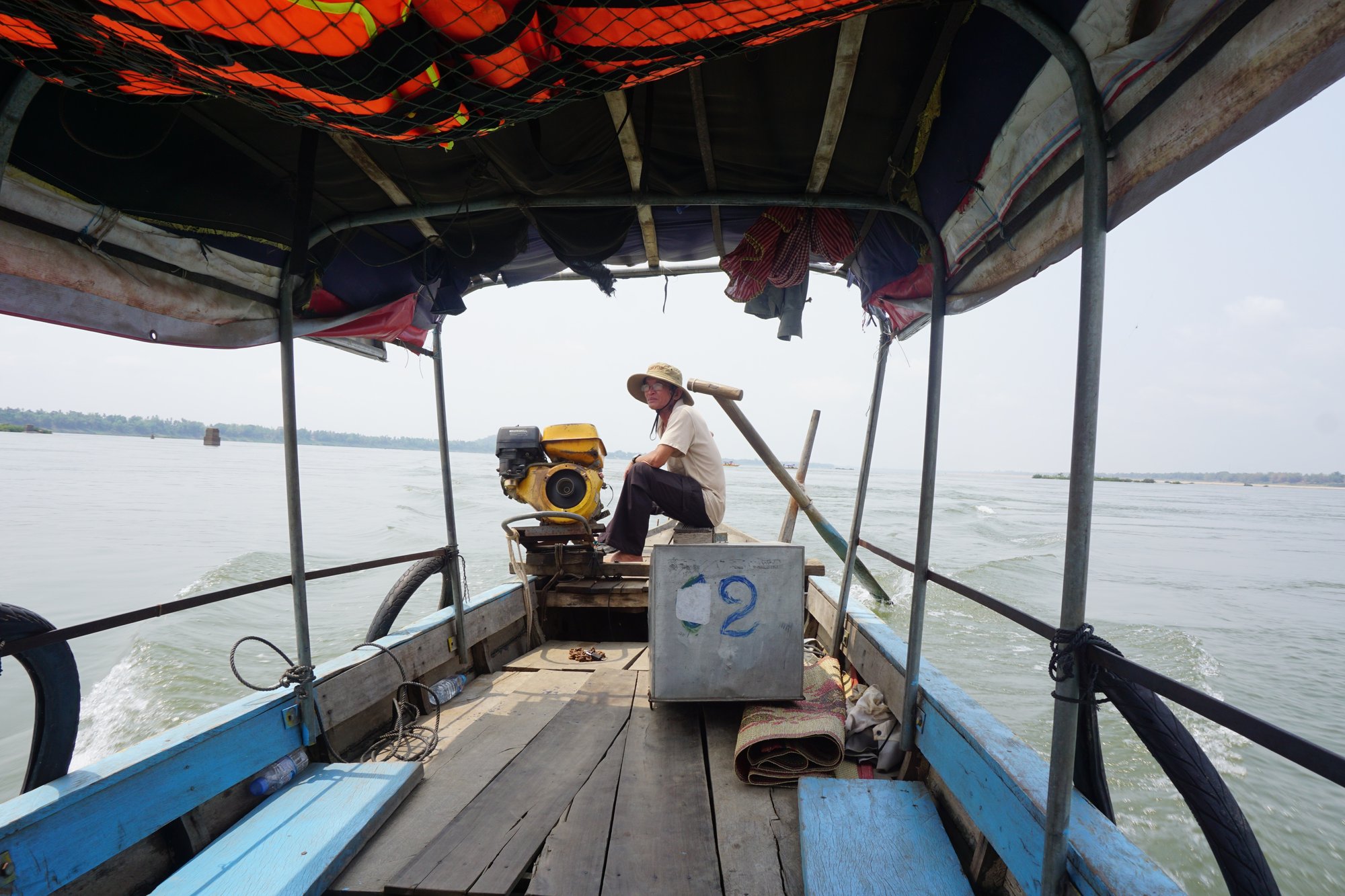Wij willen deze dolfijnen weleens zien! Vanuit Kratie huren we een scooter en gaan we op weg naar Kampi. De weg naar Kampi is al enorm leuk om te rijden. We komen langs kleine dorpjes waar mensen leven van landbouw en hun vee en de hele weg zien we de Mekong naast ons. Na 15 kilometer rijden komen we bij de plek waar we de dolfijnen hopelijk gaan zien. We betalen 7 dollar per persoon en mogen dan een uur lang het water op met een local die het bootje bestuurt én blijkbaar precies weet waar de dolfijnen zitten. Want al na 5 minuten zien we ze! Op de één of andere manier hebben dolfijnen altijd iets magisch vind ik. Als je ze ziet, krijg je kriebels in je buik. :-)
