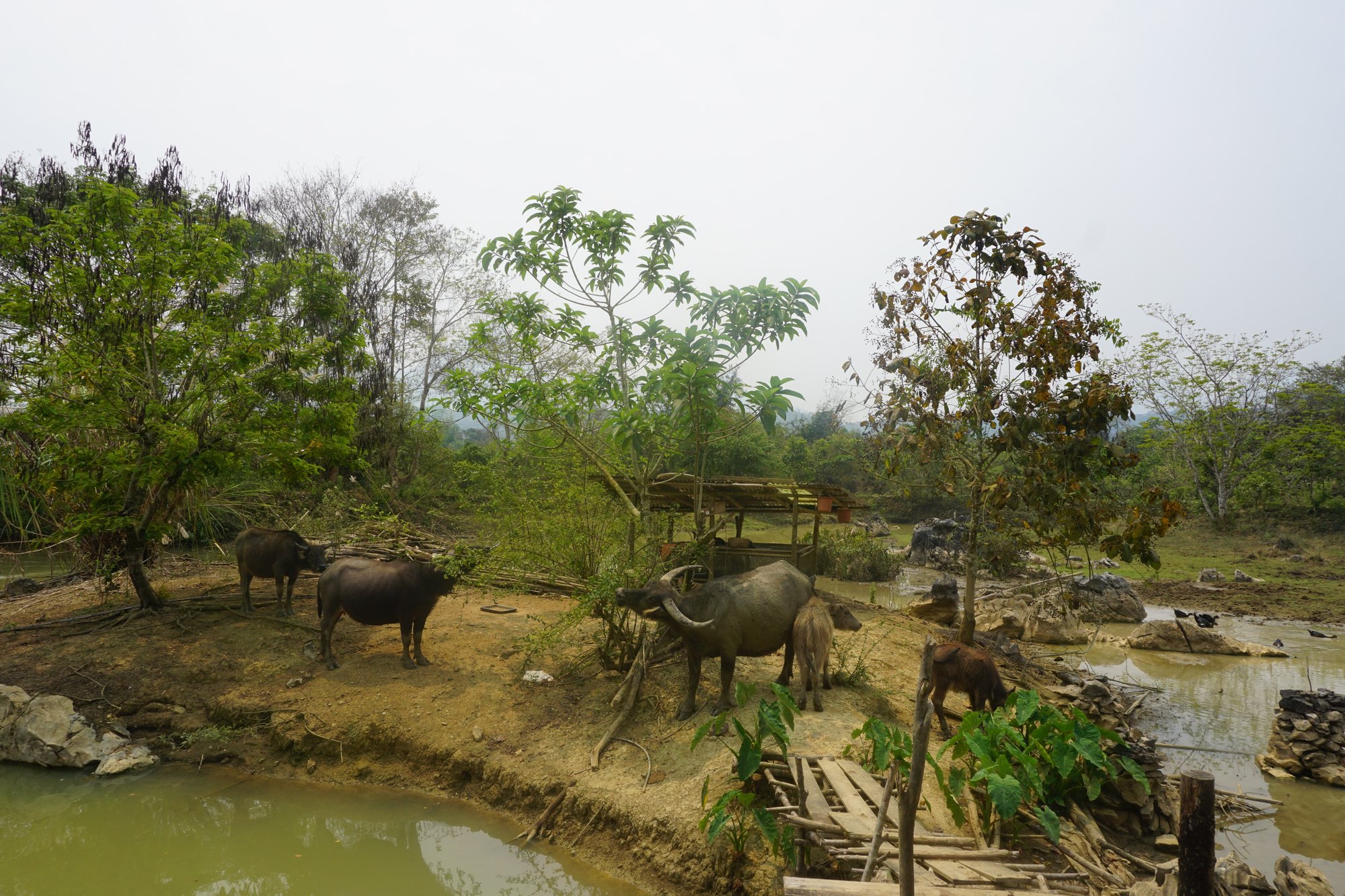 Het mooie van deze weg is wel dat je je echt begeeft in authentieke dorpjes en heerlijk rustige natuur. Soms staat er ineens een koe op de weg of kom je langs kinderen die fanatiek naar je zwaaien en vrolijk 'Sabaidee' roepen. Dat geeft weer energie om door te fietsen! :-)