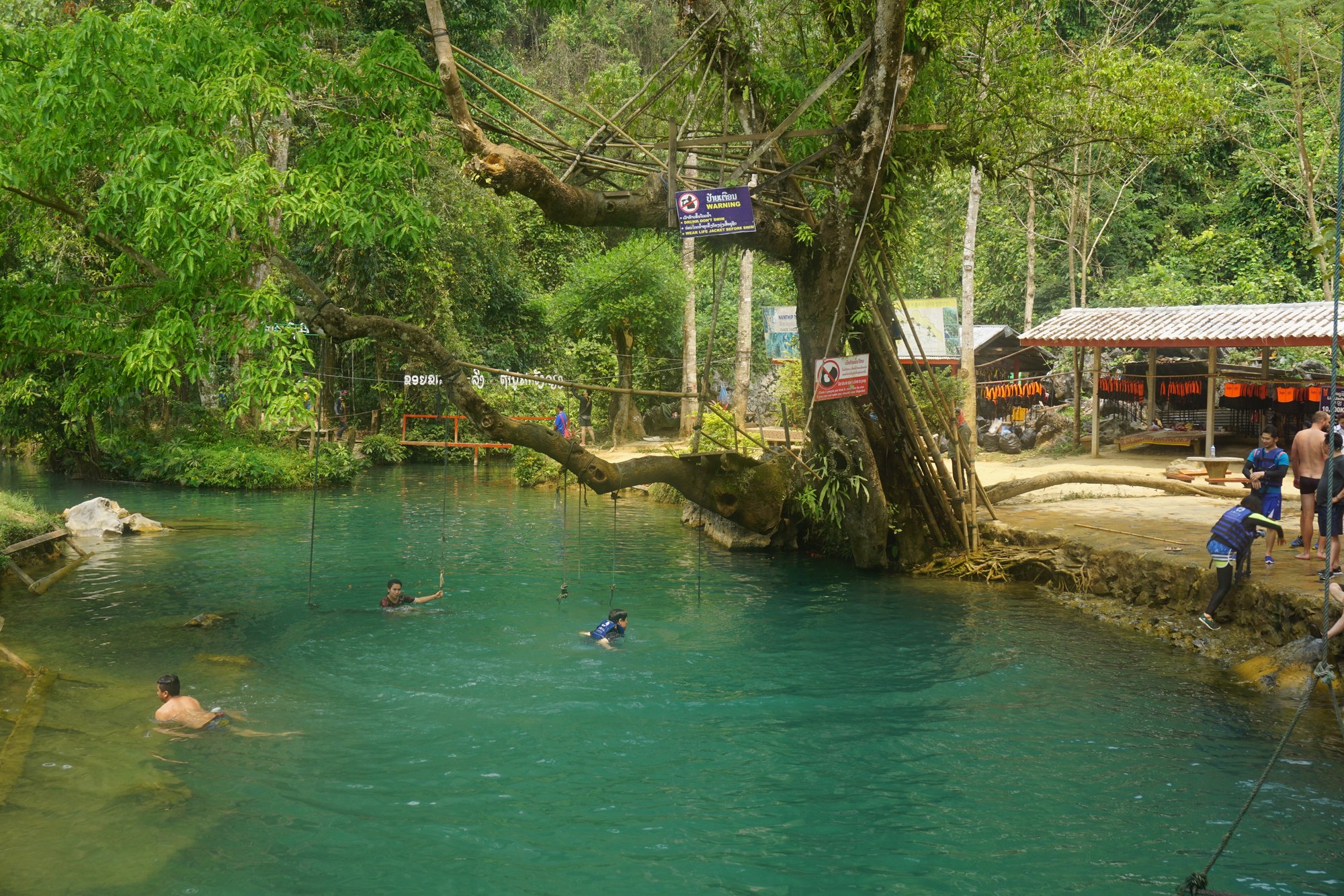 Ja! Eindelijk zijn we bij Blue Lagoon 3. Deze lagune ligt ongeveer 17 kilometer van Vang Vieng en is daardoor het beste bewaard gebleven. De lagune is mooi gelegen en het water is blauw. Een topplek om even af te koelen door een duik in het water te nemen. Ook hier zwemmen andere toeristen, maar het voelt veel gemoedelijker en het is veel rustiger dan bij Blue Lagoon 1.