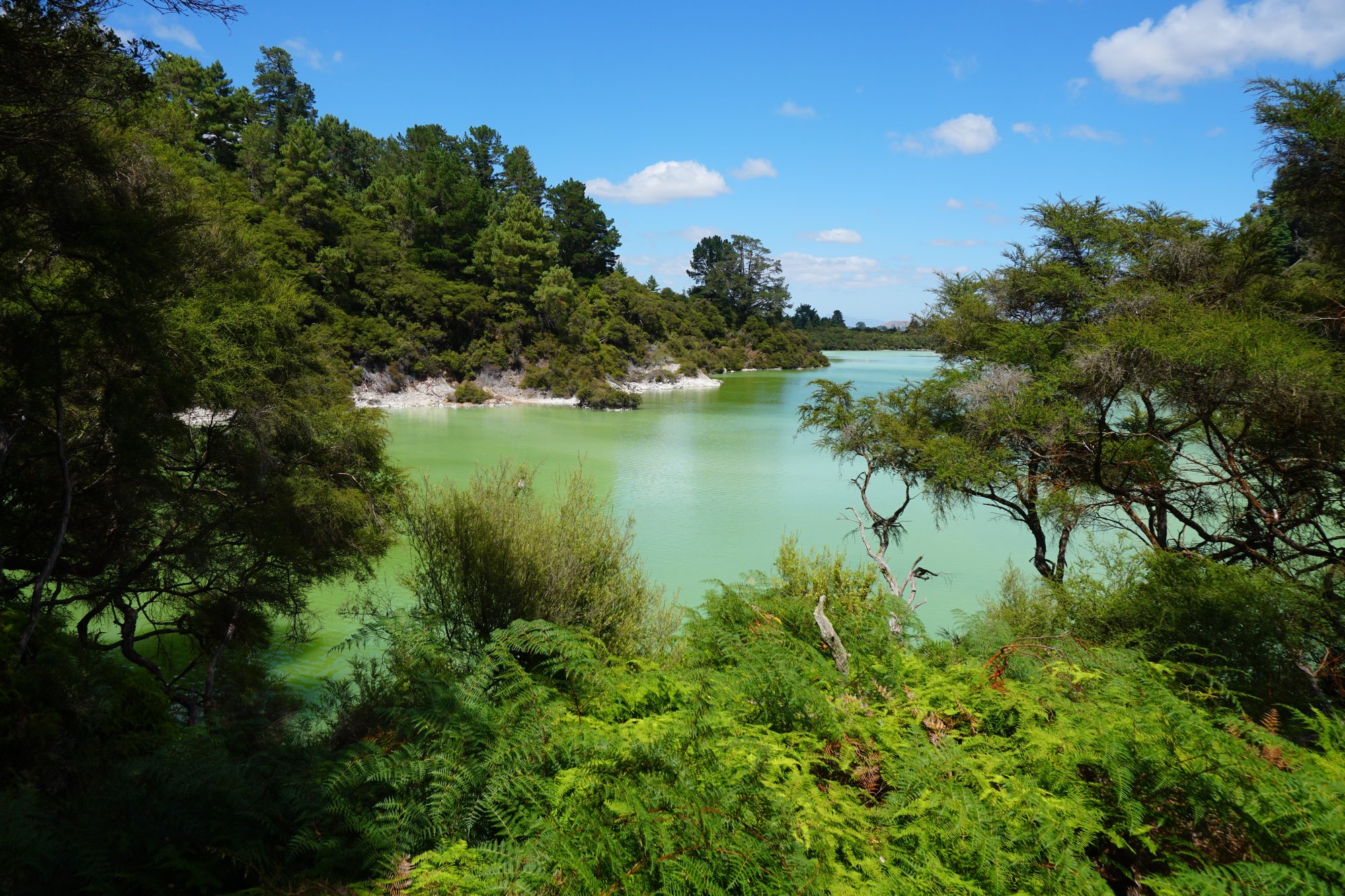 Het pad eindigt bij het schitterende Lake Ngakoro. Vanaf hier ga je via een andere route terug richting Champagne Pool. Langs route 2 & 3 vind je niet de bekendste plekken van het park, maar het is nog steeds super mooi. Wat ons betreft mag je ook route 2 & 3 echt niet missen als je Wai-O-Tapu Thermal Wonderland bezoekt!