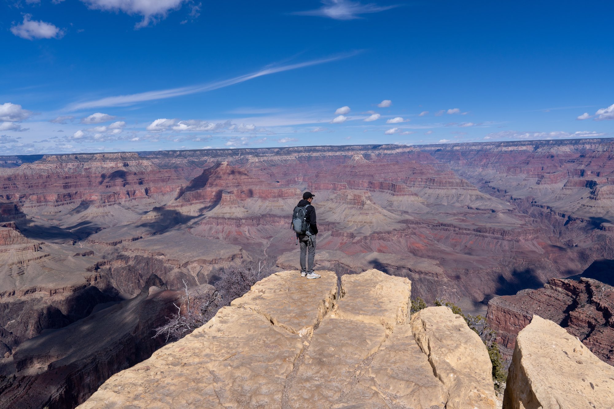 Je zult nooit alleen zijn bij de Grand Canyon, maar gelukkig is het park erg groot en verspreiden bezoekers zich makkelijk. De drukste periode is in de lente en zomer. Vooral vakantieperiodes en weekenden zijn populair, dus probeer deze zoveel mogelijk te vermijden. Wij waren begin maart, op doordeweekse dagen, bij de Grand Canyon en dat beviel heel goed. We hebben geen last gehad van overvolle shuttlebussen of parkeerterreinen en stonden op wildkampeerplekken vlakbij het park zelfs helemaal alleen.