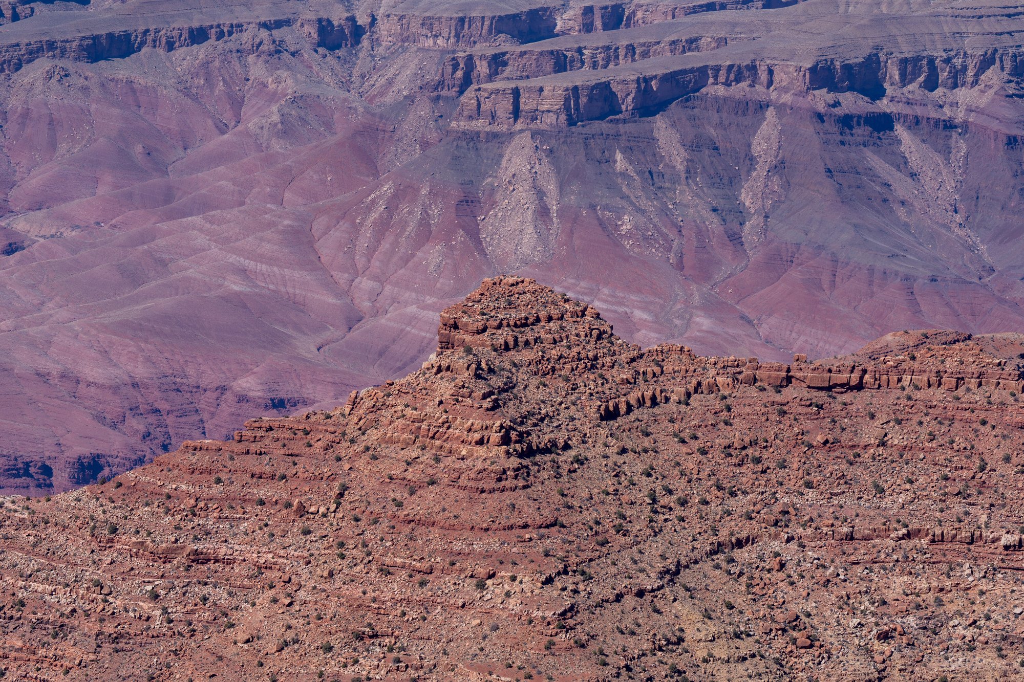 Na een tijdje staren naar dit fascinerende stuk natuur, rijden we over de Desert View Road verder naar andere uitzichtpunten. We stoppen bij Navajo Point, Lipan Point, Moran Point en Grandview Point. Soms liggen de uitzichtpunten op nog geen kilometer van elkaar en verschillen ze niet veel van elkaar, maar af en toe moeten we een kilometer of 10 rijden voordat we bij het volgende uitzichtpunt komen. Het geeft je iets van een idee hoe enorm de Grand Canyon is. Je kunt hier een middag rijden en dan alsnog ben je nog lang niet voorbij de kloof. Bizar!
