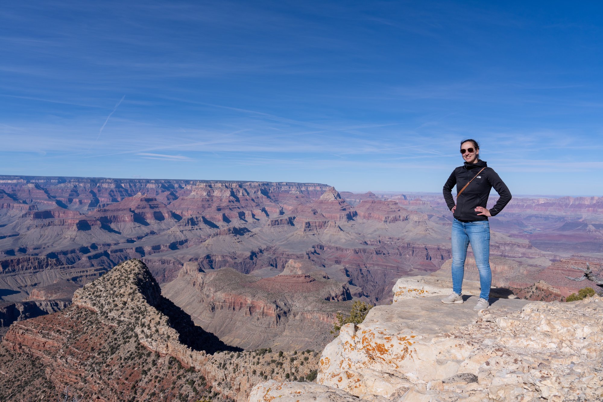 Het is ook een besefmoment voor ons dat we hier toch maar mooi zijn. De voorbereidingen voor deze reis gingen niet zonder slag of stoot, maar we hebben doorgezet en staan nu met onze eigen bus bij de Grand Canyon. We zijn trots en blij. We hebben het geflikt!