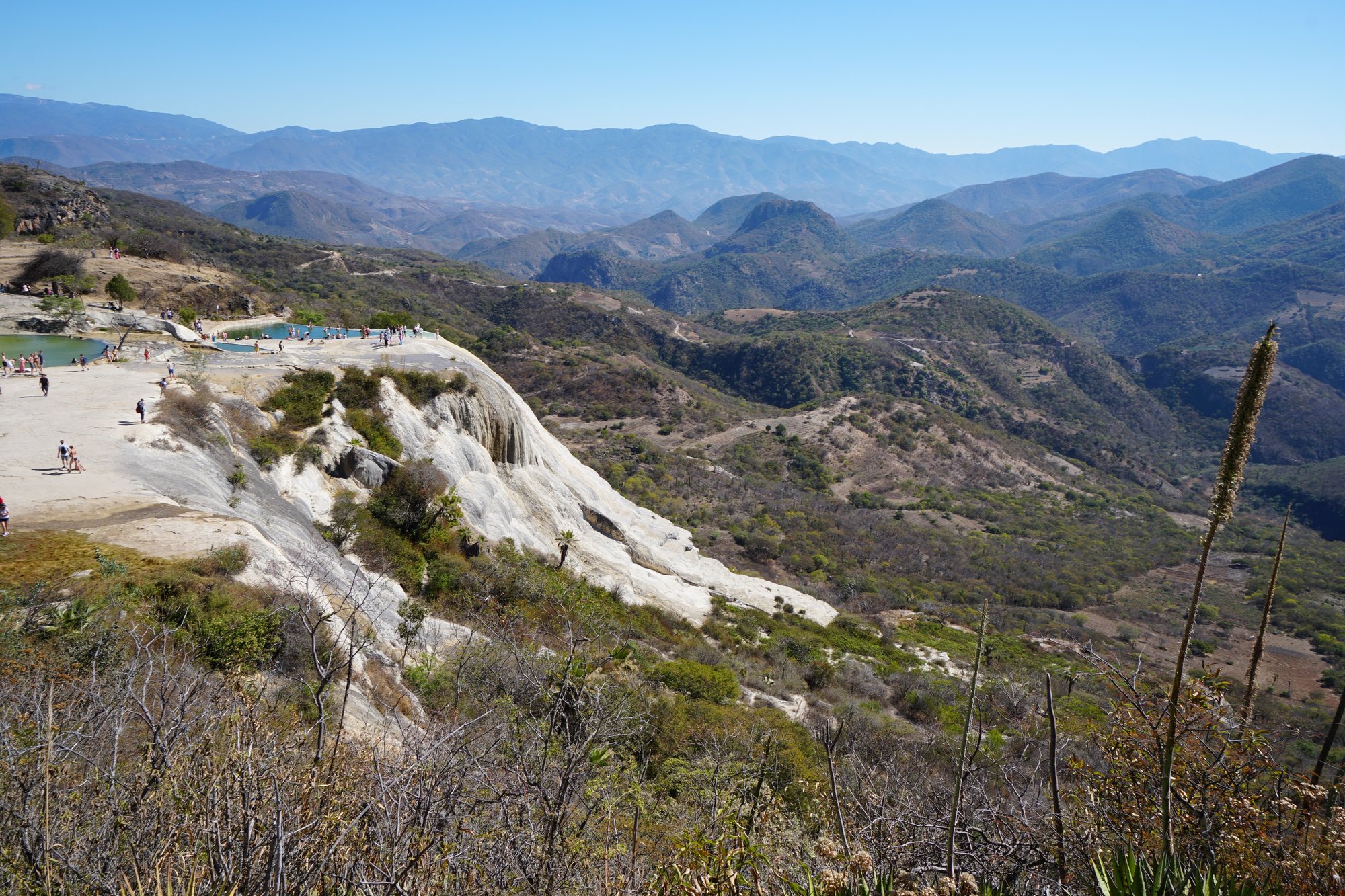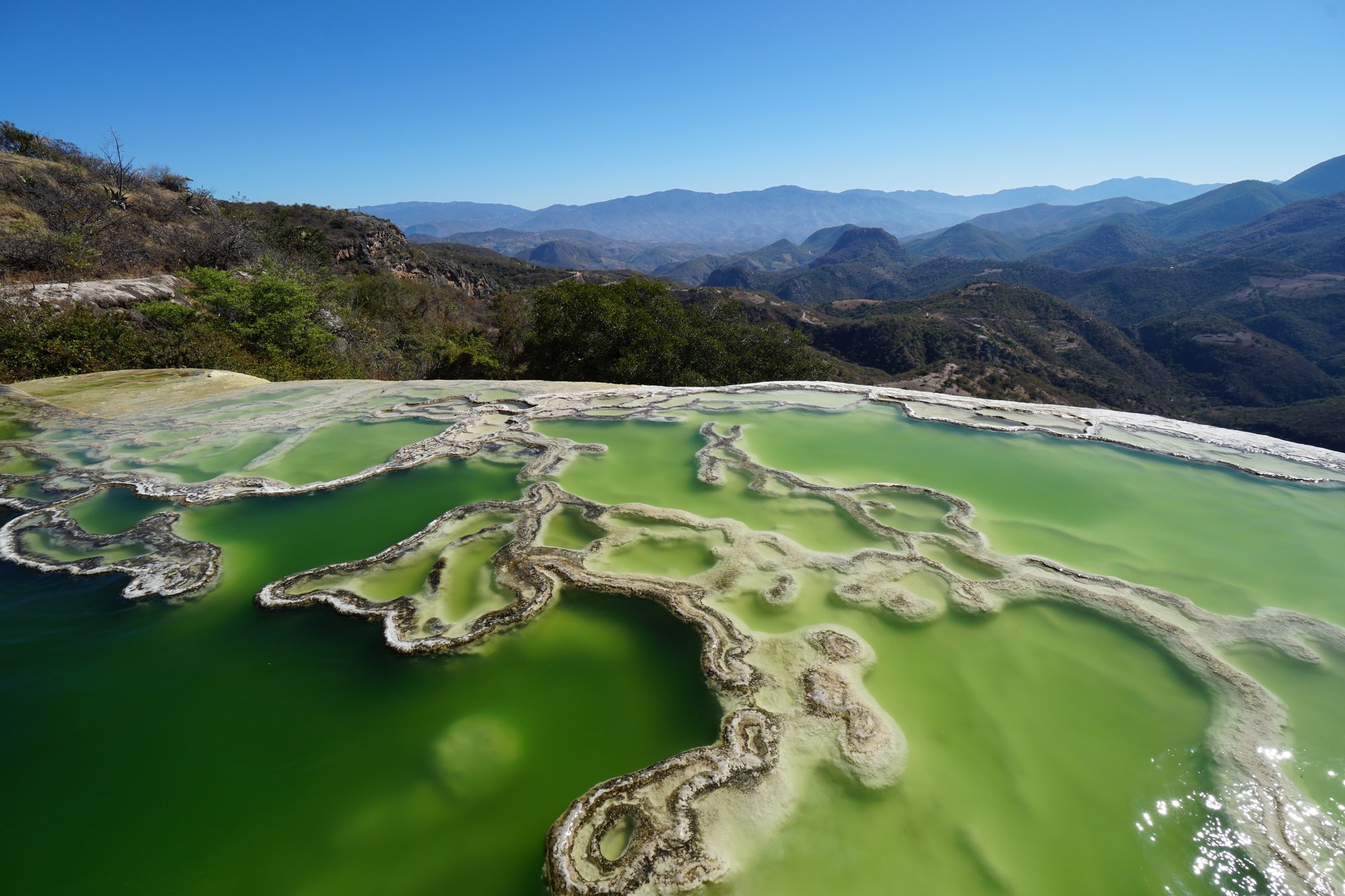 Letterlijk betekent Hierve el Agua het water dat kookt en dat komt doordat het natuurverschijnsel is ontstaan vanuit een warmwaterbron. Het water is nog altijd rond de 25 graden en in sommige poelen mag je zwemmen. Dat is een leuk extraatje, maar wij vinden Hierve el Agua vooral de moeite waard vanwege de schoonheid. In sommige poelen kleurt het water felgroen door alle mineralen. Samen met het uitzicht over de bergen is dit een schitterende plek!