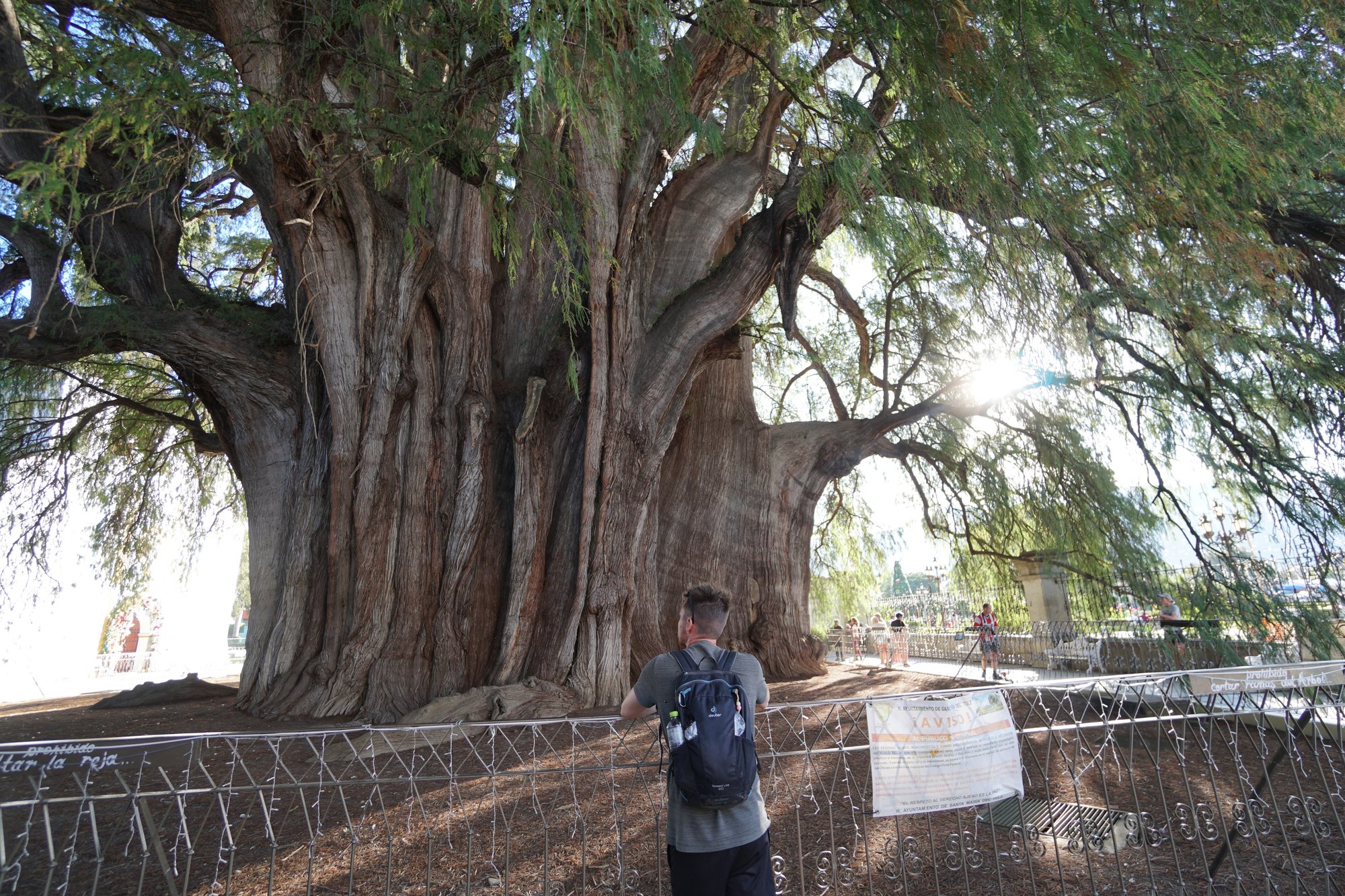 We sluiten onze dag af bij Árbol del Tule. Onze verwachtingen waren niet heel hooggespannen, maar Árbol del Tule weet ons te verbazen. We kijken hier naar de dikste boomstam ter wereld. De omtrek is maar liefst 42 meter. Bizar! Door deze omvang werd eerst gedacht dat Árbol del Tule uit meerdere bomen bestaat, maar DNA onderzoek heeft aangetoond dat het toch echt maar één boom is. Dan sta je even met je ogen te knipperen hoor!