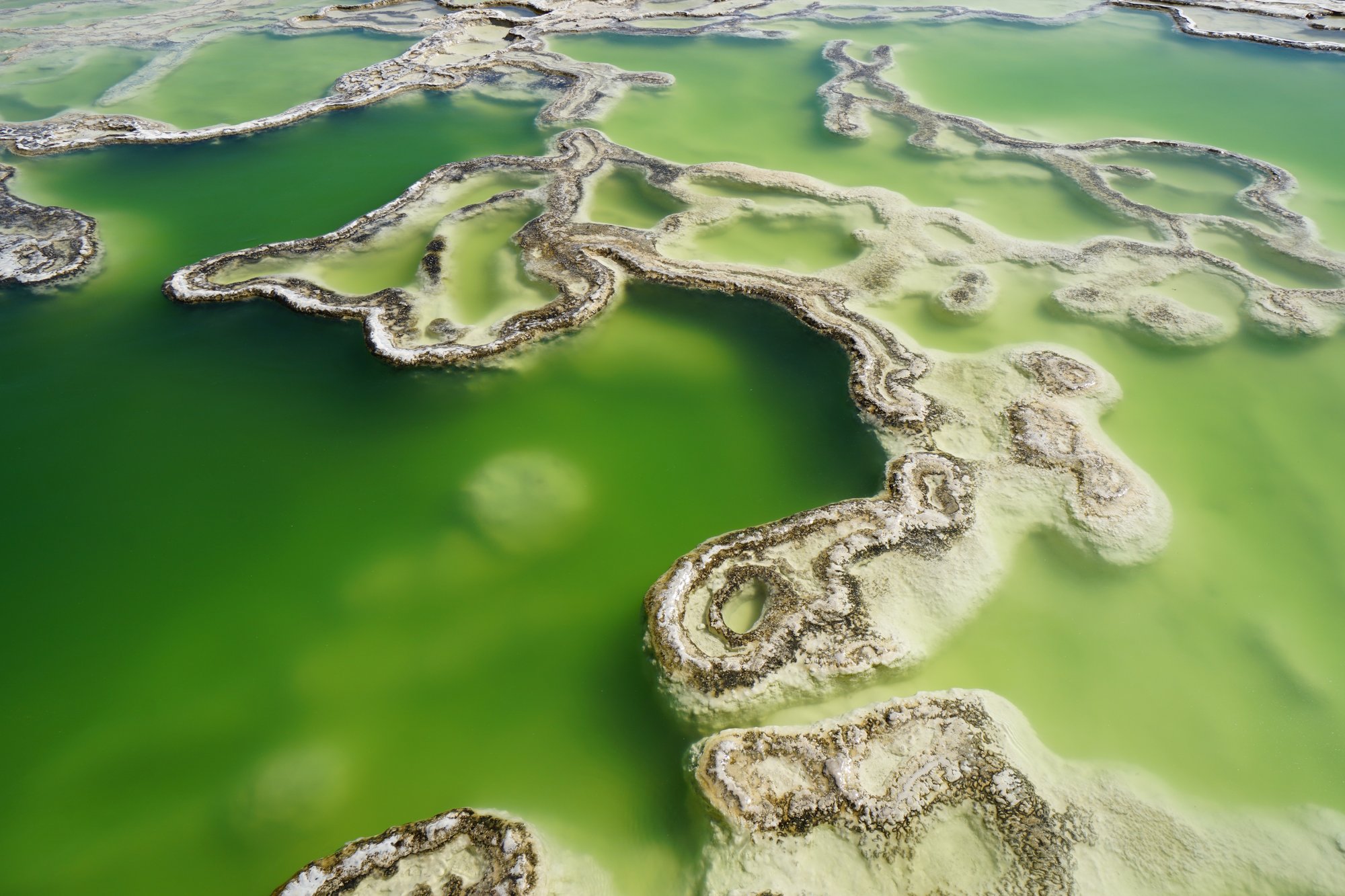 Als we rond kwart over 10 bij de parkeerplaats aankomen, staat het inderdaad nog niet vol. We lopen over het steile pad een stuk naar beneden en komen dan gelijk bij het beste deel van Hierve el Agua. Aan de afgrond ligt namelijk een waterpoel met felgroen water. En nee, we hebben geen filters gebruikt bij de foto’s!