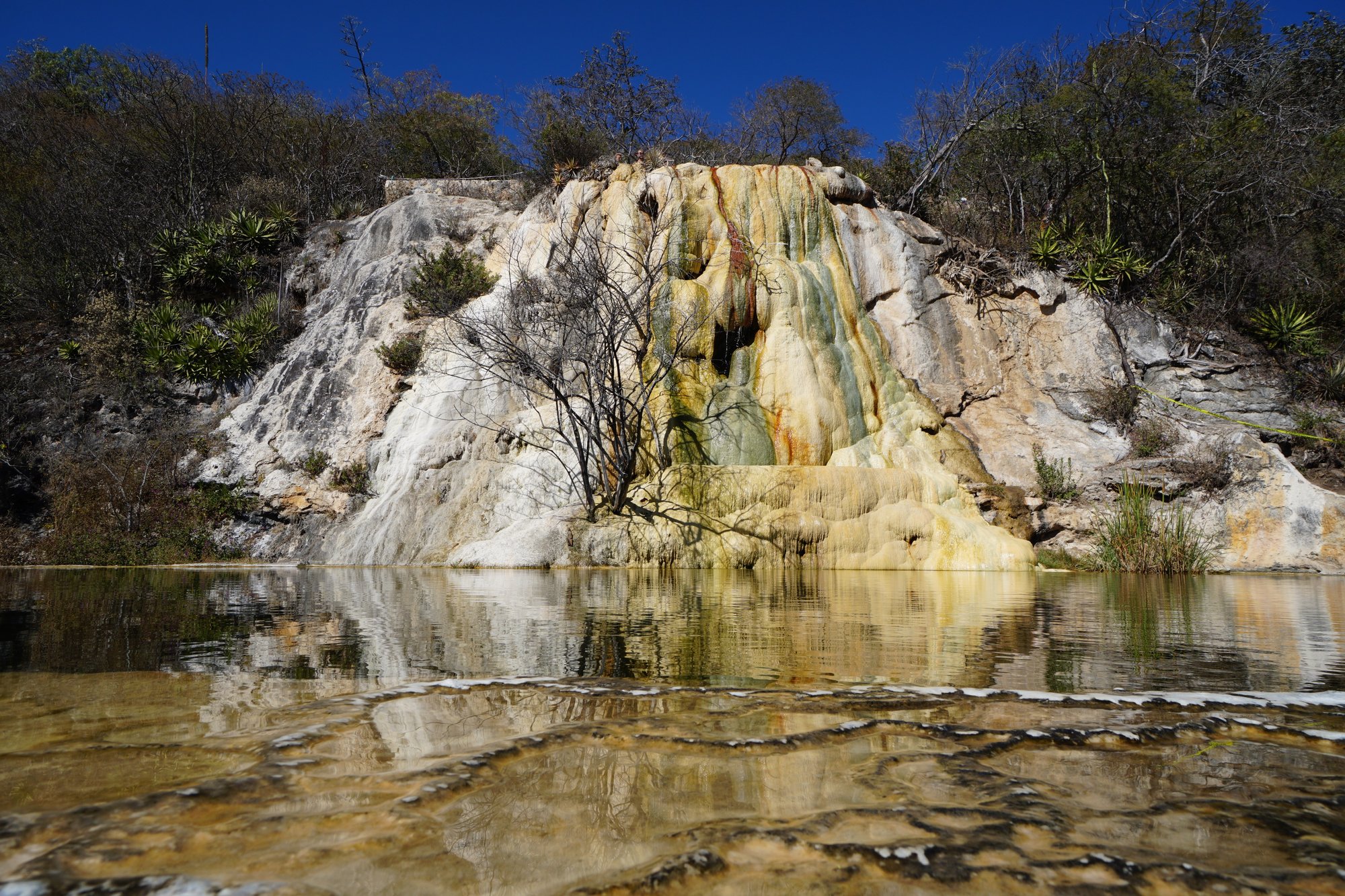 Dat is eigenlijk al gelijk een goede vraag! Hierve el Agua is een uniek stukje natuur. Het wordt vaak een waterval genoemd, maar technisch gezien is dat het niet. Er stroomt namelijk bijna geen water naar beneden bij Hierve el Agua. De bezienswaardigheid dankt zijn naam aan de vorm van de druipende rotsen, want dat lijkt wel op een waterval! Deze druipende rotsen zijn in duizenden jaren tijd gevormd door de afzetting van mineralen en calcium.