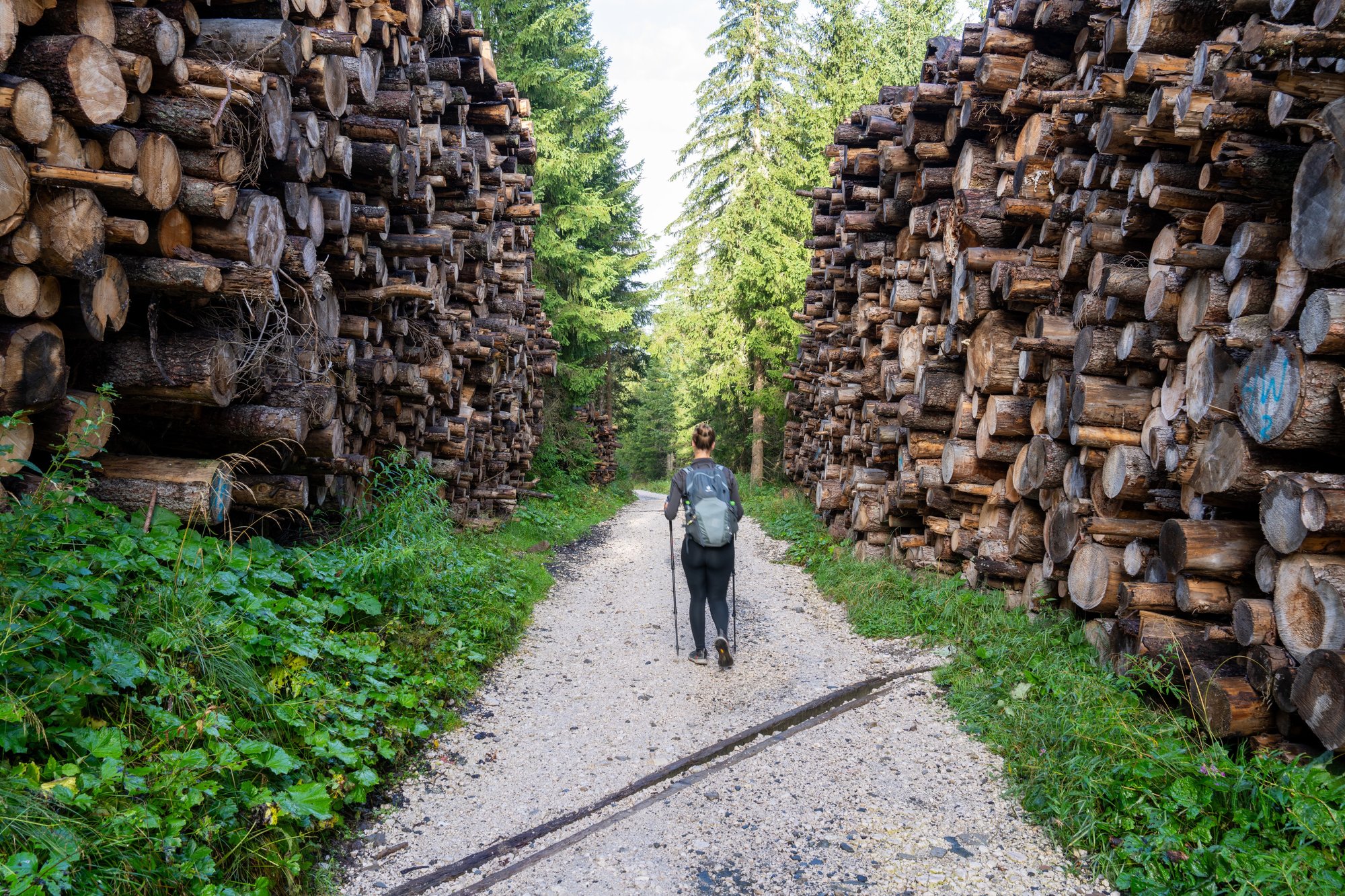Over een klimmend pad door het bos lopen we richting de Geisleralm. We komen bijna niemand tegen. De stilte, de rust en het alleen zijn in de natuur doet ons goed. Zelfs als de lucht boven ons nog grijzer wordt en het begint te miezeren, blijven we hoopvol. We zijn bijna bij dé plek waar het allemaal om gaat vandaag!