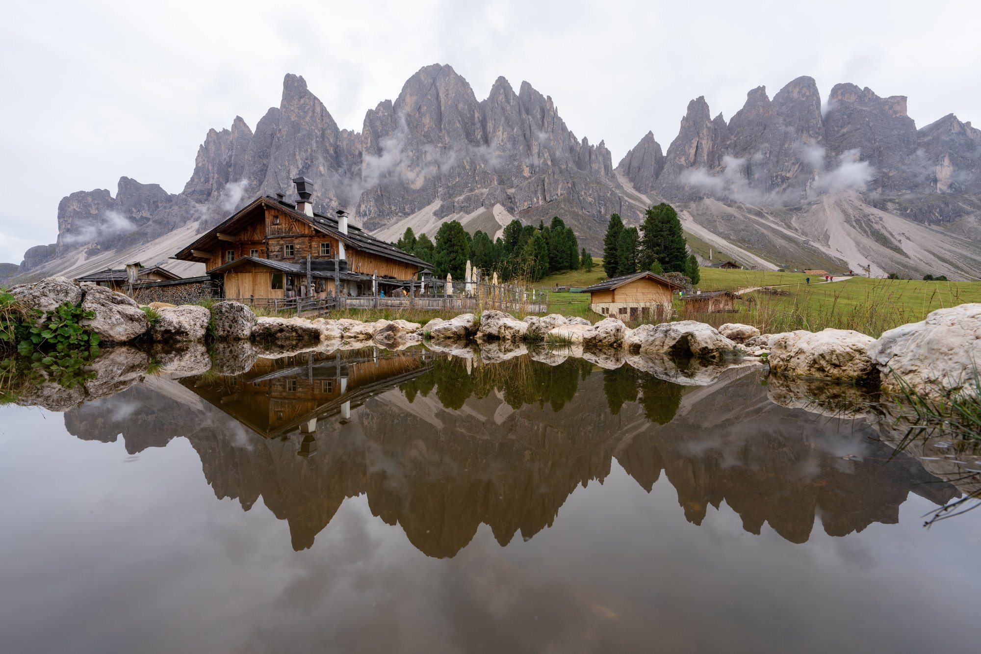 De Geisleralm is één van de populairste highlights van de Dolomieten. De idyllische berghut, gelegen tussen de groene bossen en weilanden, vormt een schril contrast met de rauwe pieken van de Geisler bergen erachter. Het is simpelweg een prachtig plaatje en een must-see als je naar de Dolomieten gaat.