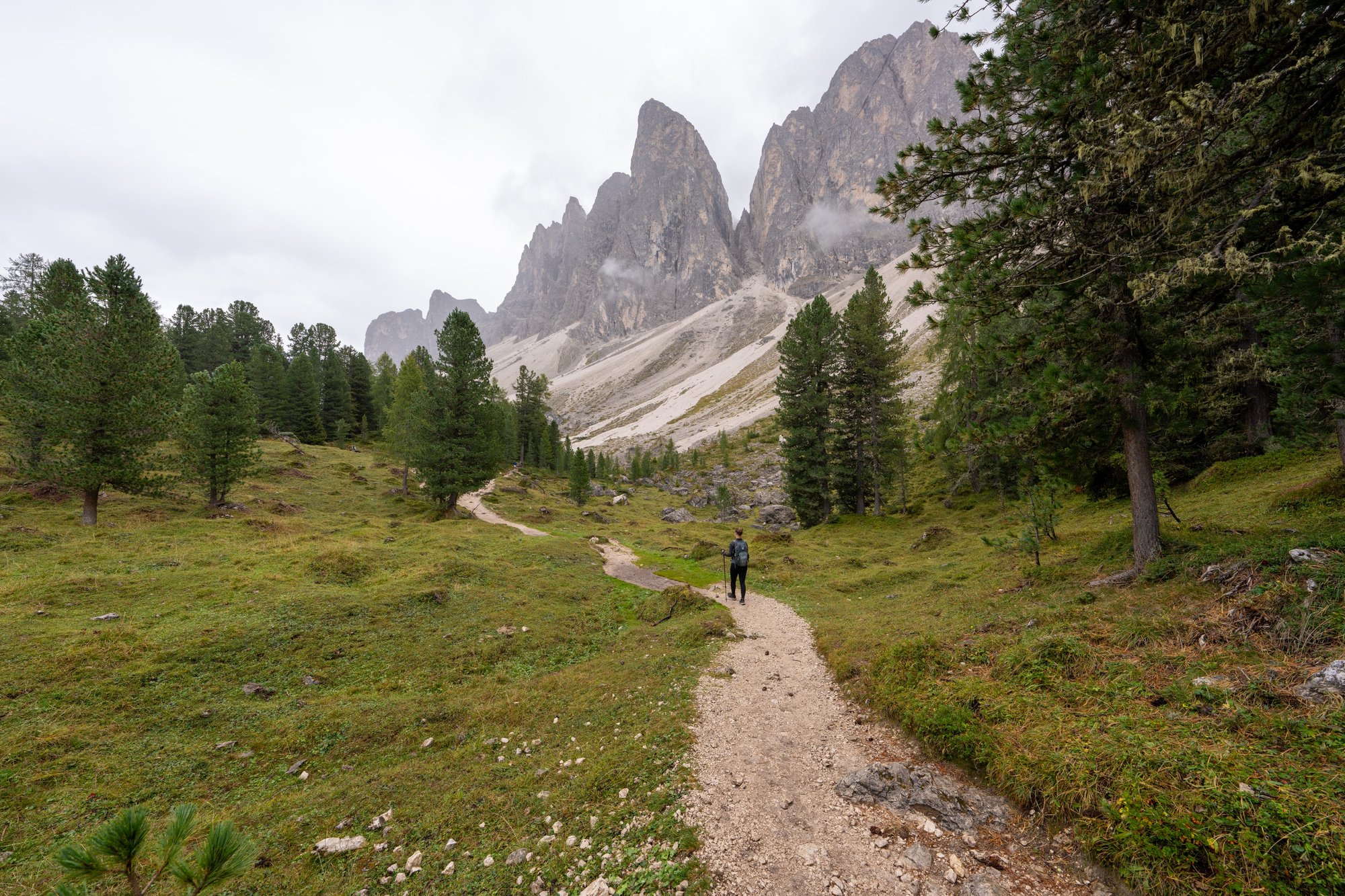 Zoals meerdere wegen naar Rome leiden, zo leiden ook meerdere trails naar de Geisleralm. De meest bekende route is vanuit Zannes via de Adolf Munkel Trail naar de Geisleralm, omdat je bij de Adolf Munkel Trail vlak langs de imposante bergpieken loopt en hier regelmatig mooi zicht op hebt. Ook wij kozen voor deze hike route.