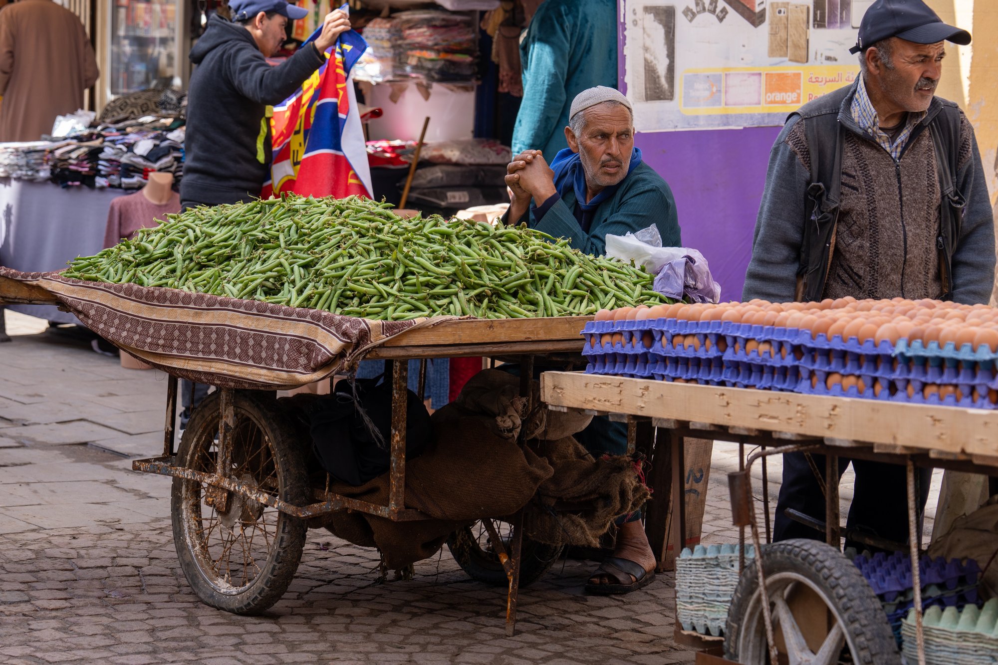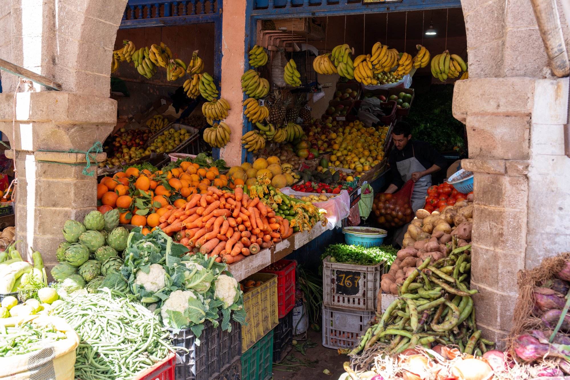 Verder drink je een koffietje voor nog geen €2 en een verse sap moet niet meer dan €3 kosten op het terras. Zin in een snack? Een crepe bij een streetfood kraampje heb je al voor 15 tot 25 dirham (€1,50 - €2,50) of neem een msemen (Marokkaanse pannenkoek) voor 35 dirham.