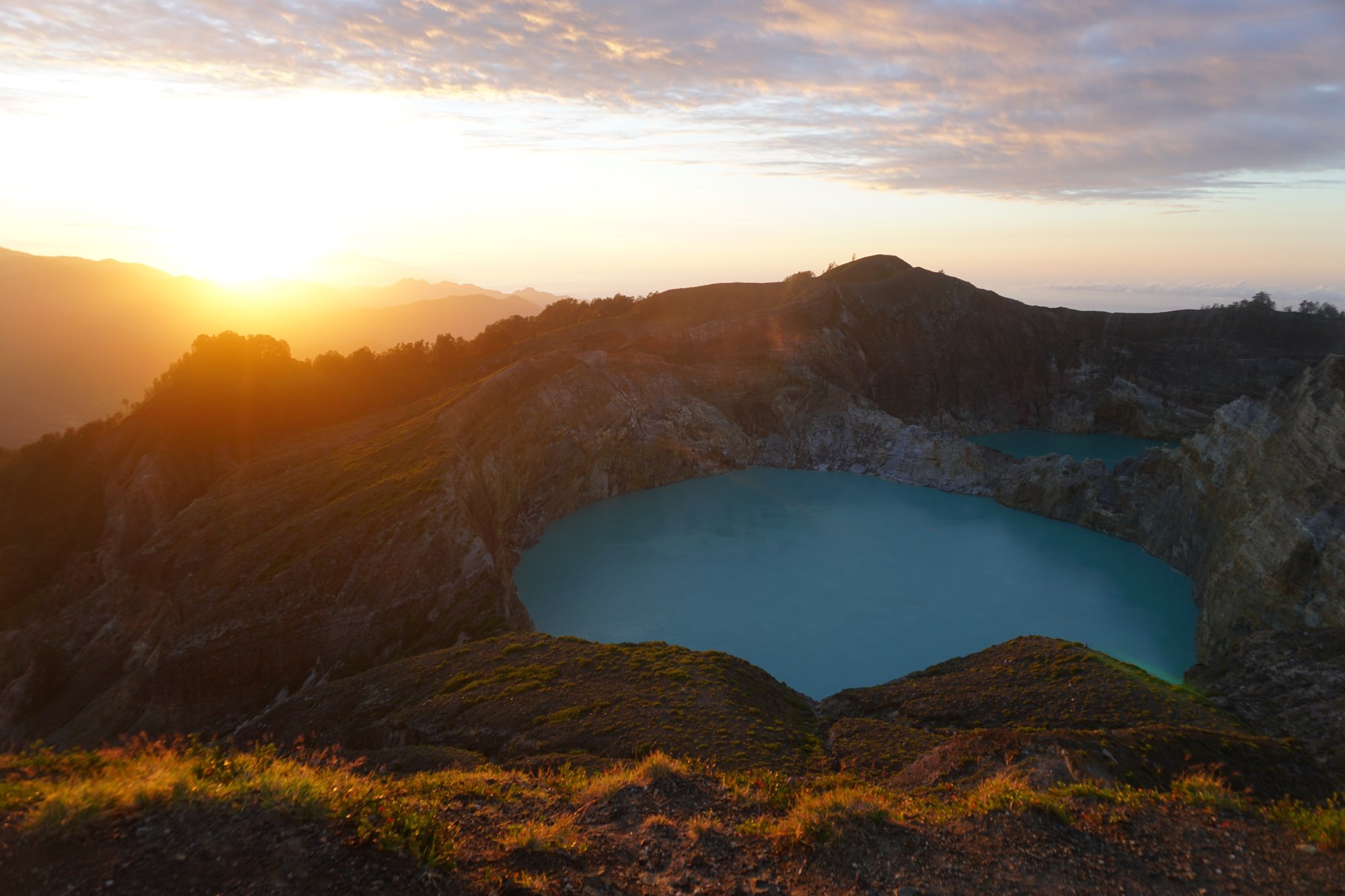 Zonsopkomst bij de kratermeren van de Kelimutu vulkaan | Magisch moment in Flores