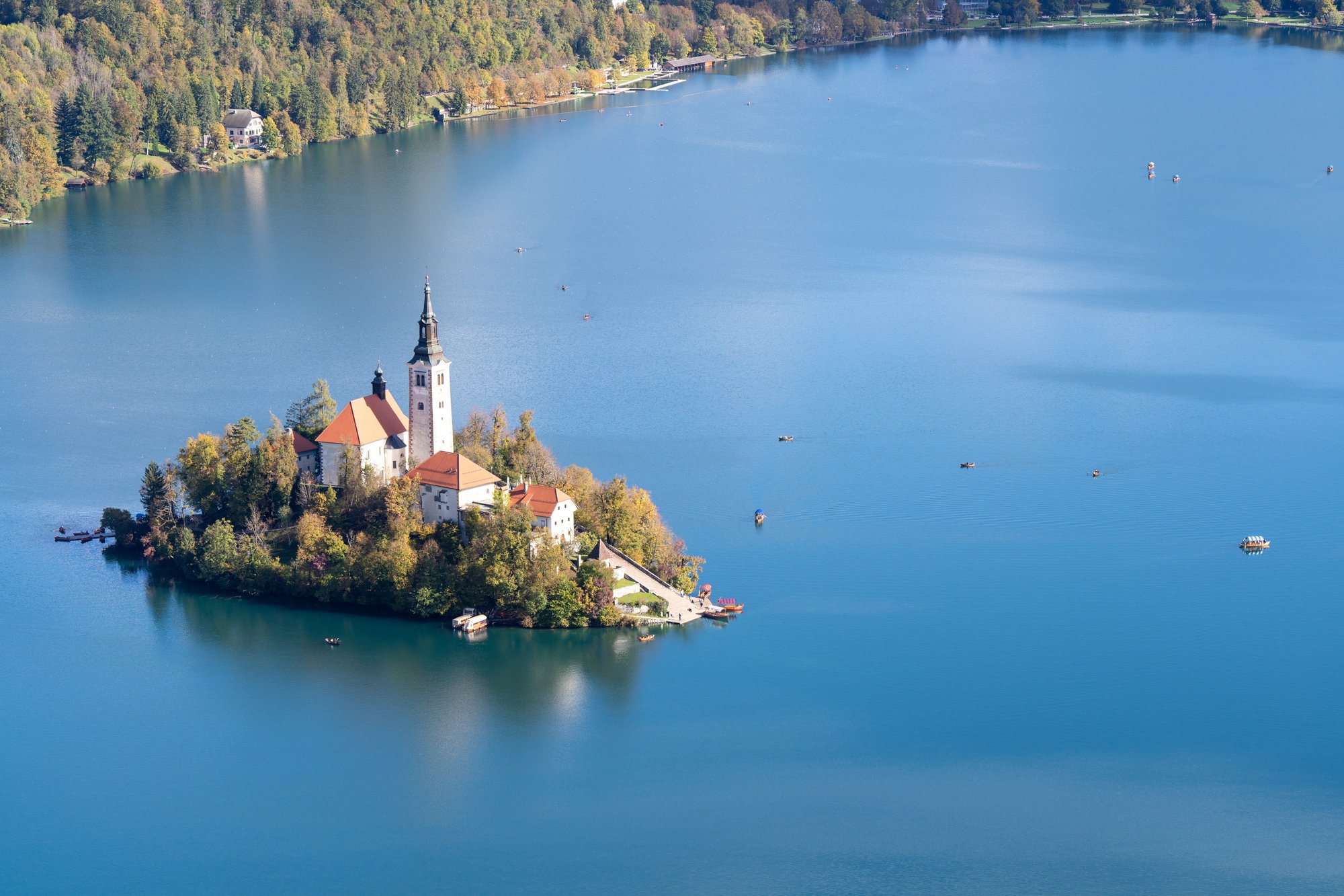 - Je kunt Lake Bled het gehele jaar bezoeken. In de winter maakt de sneeuw het geheel nog droomachtiger, maar zijn de hikes naar Mala Osojnica en Ojstrica misschien wel onbegaanbaar. In het zomerseizoen kan het erg druk zijn rondom Lake Bled, dus dat is misschien niet de leukste periode. In de lente en de herfst heb je het beste van beide: je kunt naar de uitzichtpunten hiken en de topdrukte is voorbij. Wij vonden oktober een perfecte tijd om Lake Bled te bezoeken.