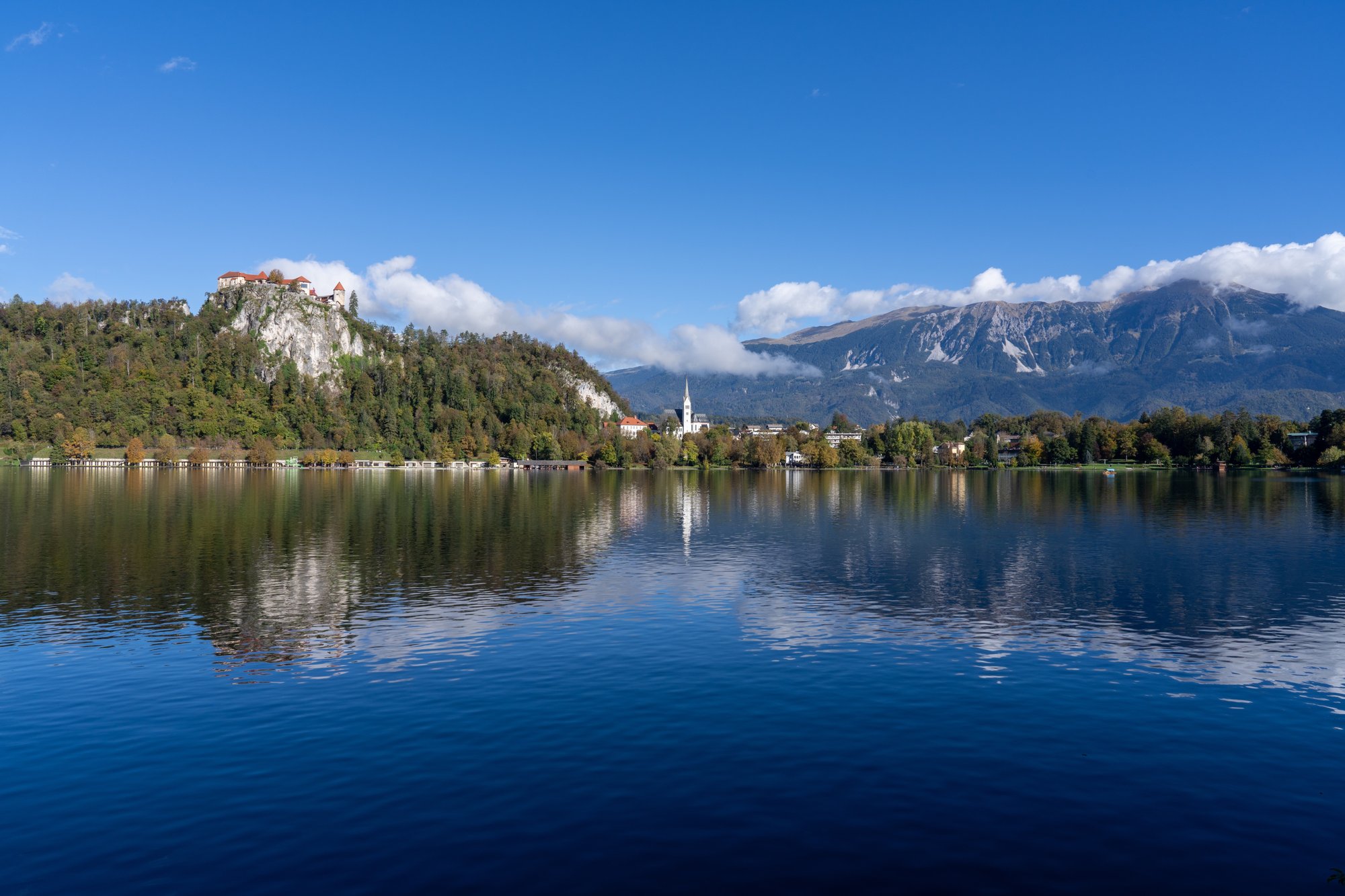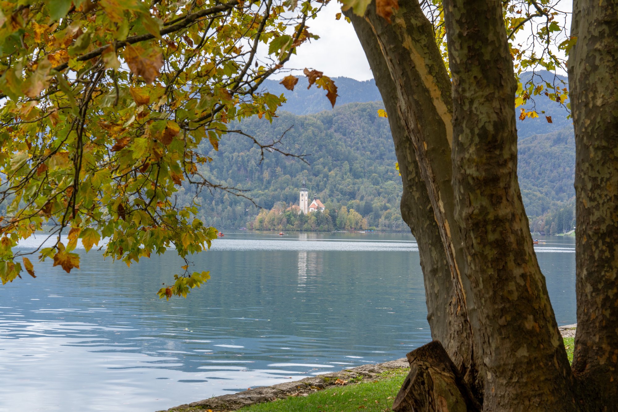 We hebben wel een beetje gemixte verwachtingen. Het zal vast mooi zijn, maar waarschijnlijk ook erg toeristisch. Daar zijn wij minder gek op… Toch hebben we het al gelijk naar ons zin als we bij het Meer van Bled aankomen. Het is gewoon een stikmooie plek en met de drukte valt het ons ook wel mee. Het is al wel half oktober, maar het is ook weekend. Toch is het allemaal prima te doen.