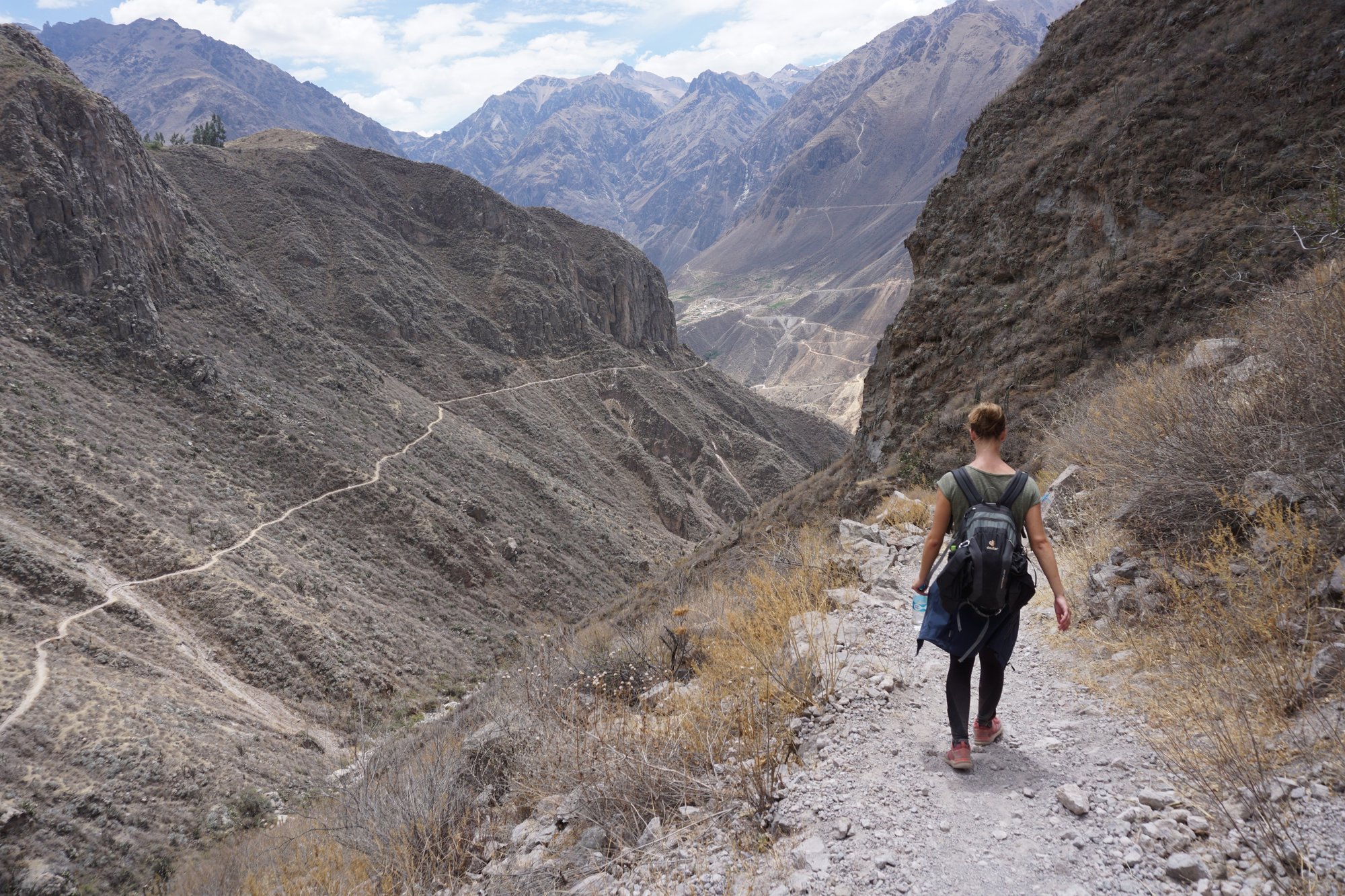 Een andere mogelijkheid is de hike naar Llahuar (hebben wij gedaan). Deze route wordt door veel minder toeristen gekozen en je hebt de uitzichten over de canyon hier dus veel meer voor jezelf. Op dag 1 loop je in 4 tot 5 uur naar het op 2.020 meter gelegen dorp Llahuar (zo'n 1.200 meter dalen!). De tweede dag kun je met de bus terug naar Cabanaconde óf je maakt je hike heel pittig door via Sangalle naar Cabanaconde te lopen. Onderschat dit zeker niet, want je moet dan op dag 2 bijna 2.000 hoogtemeters doorstaan. Ik zou zeggen: een uitdaging voor de getrainde hikers, maar een uitputtingsslag als je niet enorm fit bent. ;-) De bus is in dat geval een verstandigere optie.