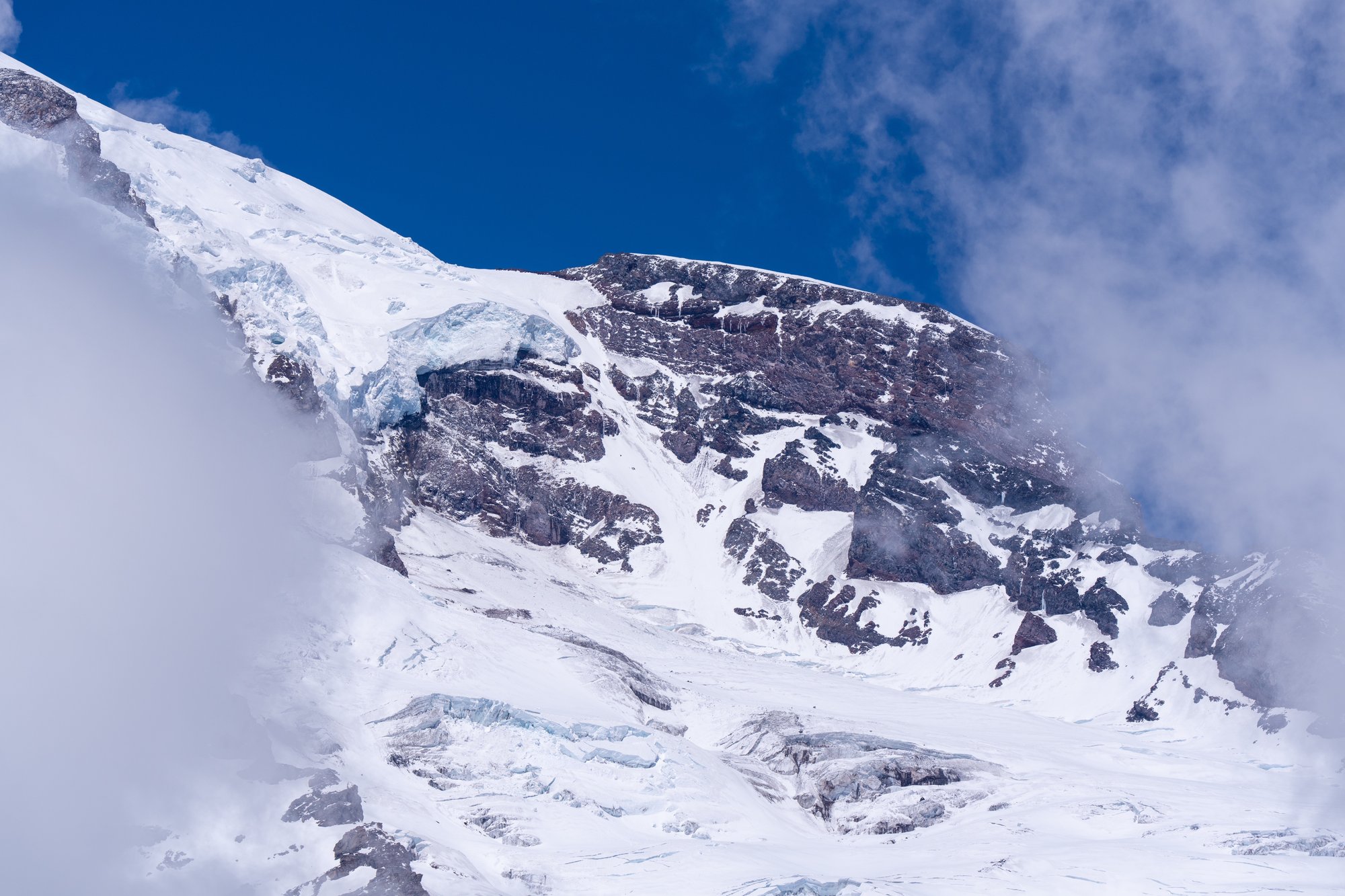 - Op Mount Rainier liggen 26 gletsjers. In totaal is het permanente oppervlak aan sneeuw en ijs 93 vierkante kilometer. Bizar groot!