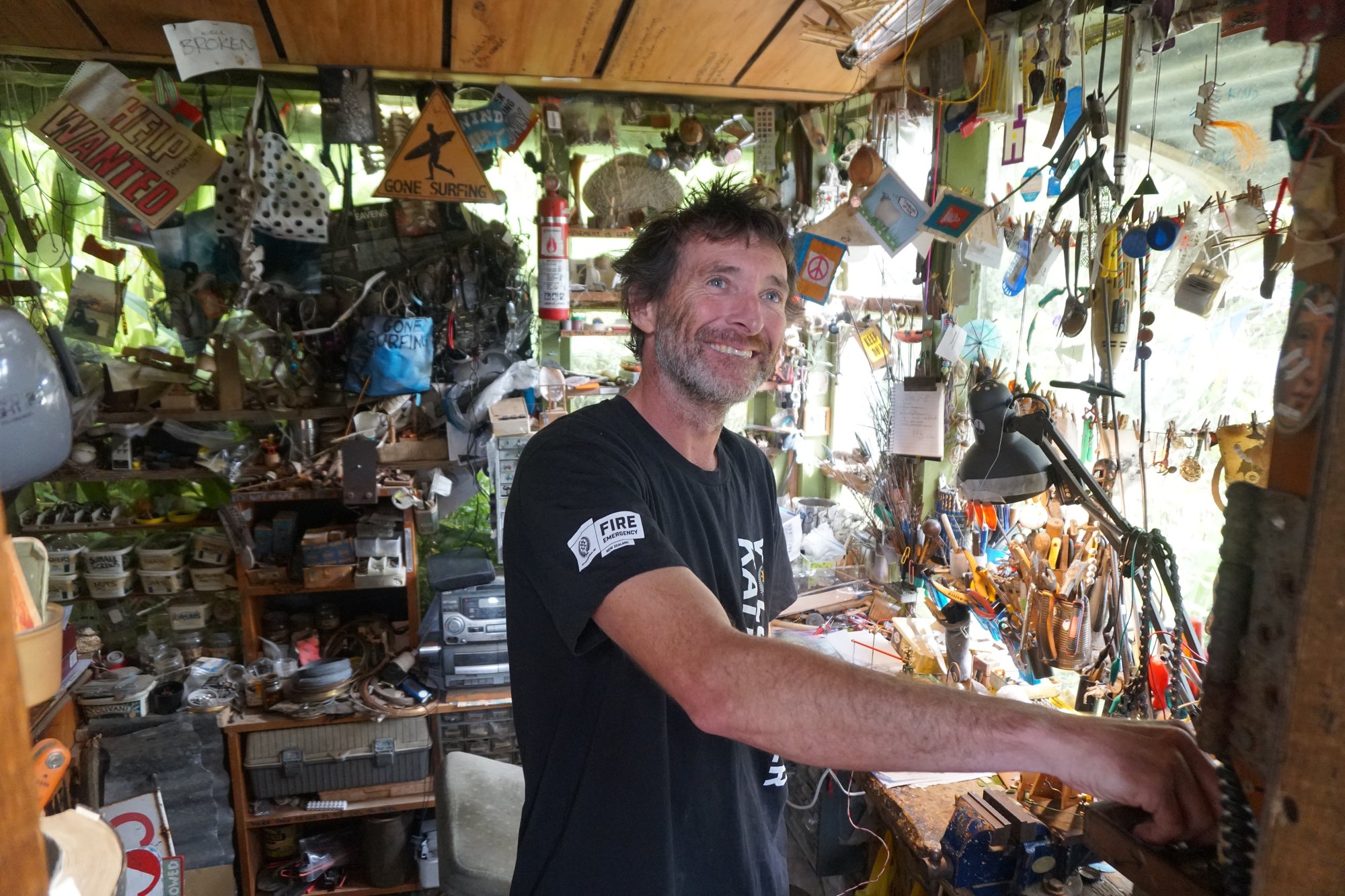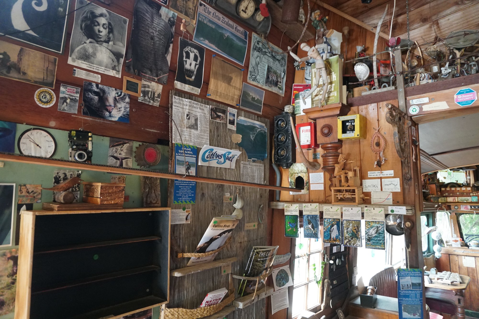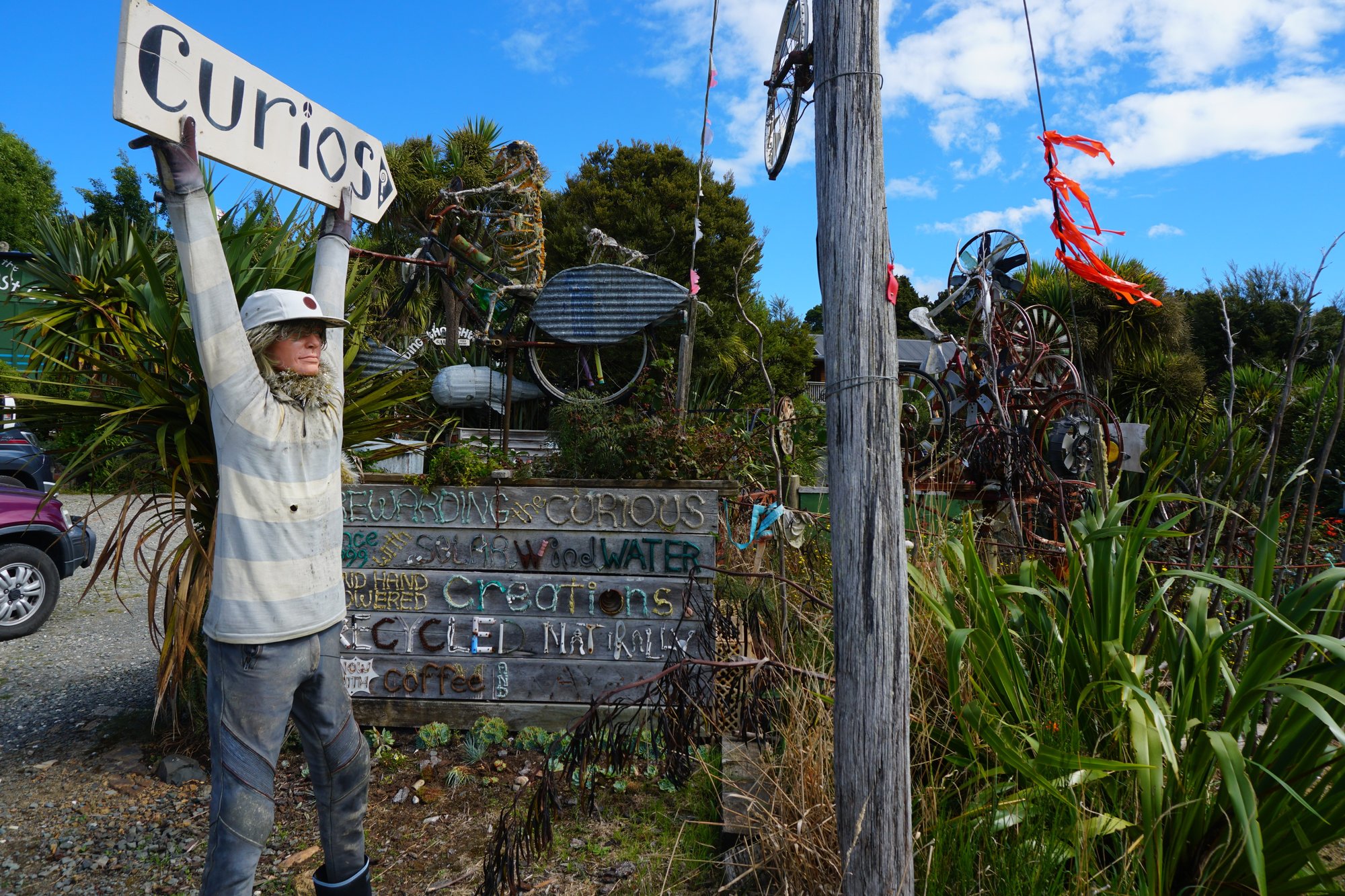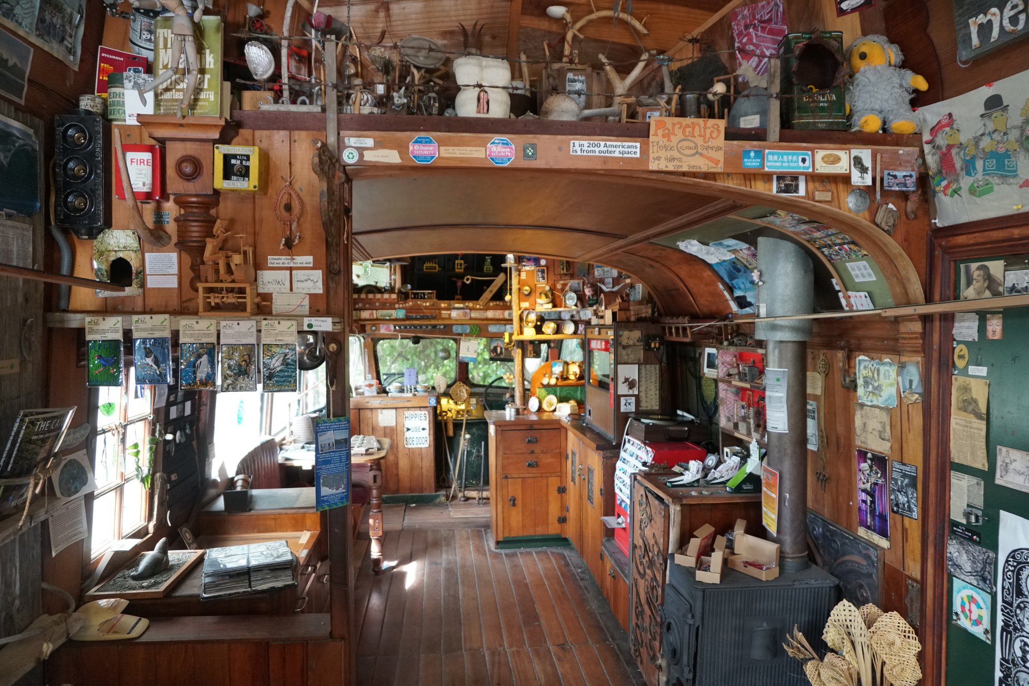 In het dorp Papatowai staat een bijzondere bus. Bij The Lost Gypsy neemt kunstenaar Blair je mee in een wondere wereld van unieke bouw- en kunstwerkjes. Je mag op knopjes drukken, aan kunstwerkjes draaien en meer. Blair omschrijft het zelf als een speeltuin voor volwassenen en zo voelden wij ons ook op deze plek. Deze excentrieke man heeft met heel weinig heel veel kunnen maken. Heel knap en zeker een stop waard. Vooral als je een creatief hart hebt (zoals Ronny) of gek bent op het excentrieke, beetje hippie achtige, dan is The Lost Gypsy een fantastische stop!