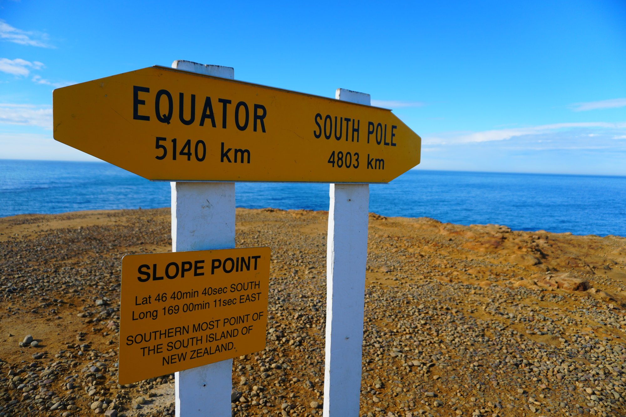 Het is niet per se de mooiste plek in de omgeving, maar wel de zuidelijkste! Op Slope Point bevinden we ons op het zuidelijkste puntje van het Zuidereiland. We turen een tijdje naar de oneindig lijkende zee voor ons en kijken hoe het water tegen de rotsen aan beukt. Een prima stop om de dag mee te beginnen!