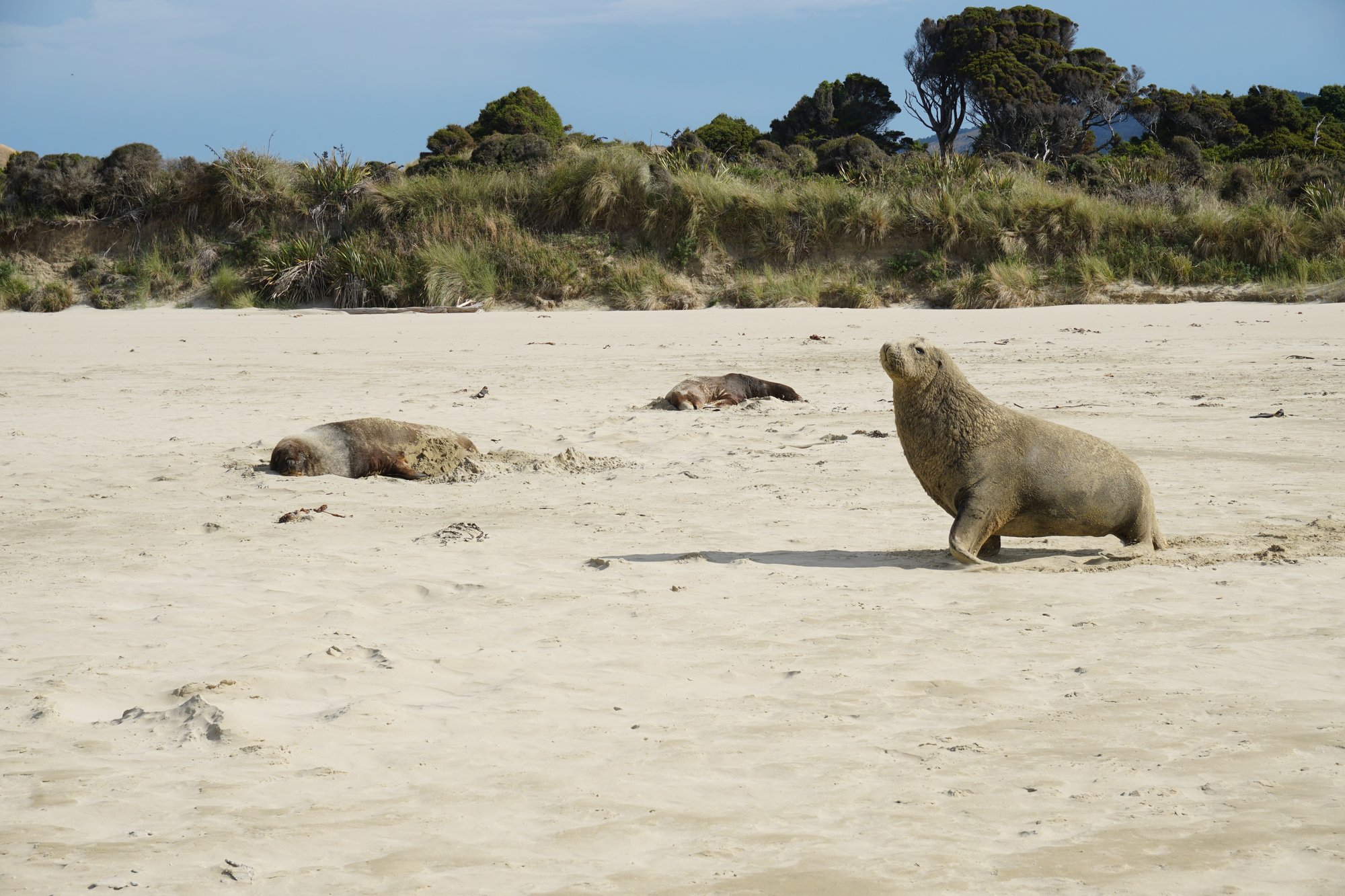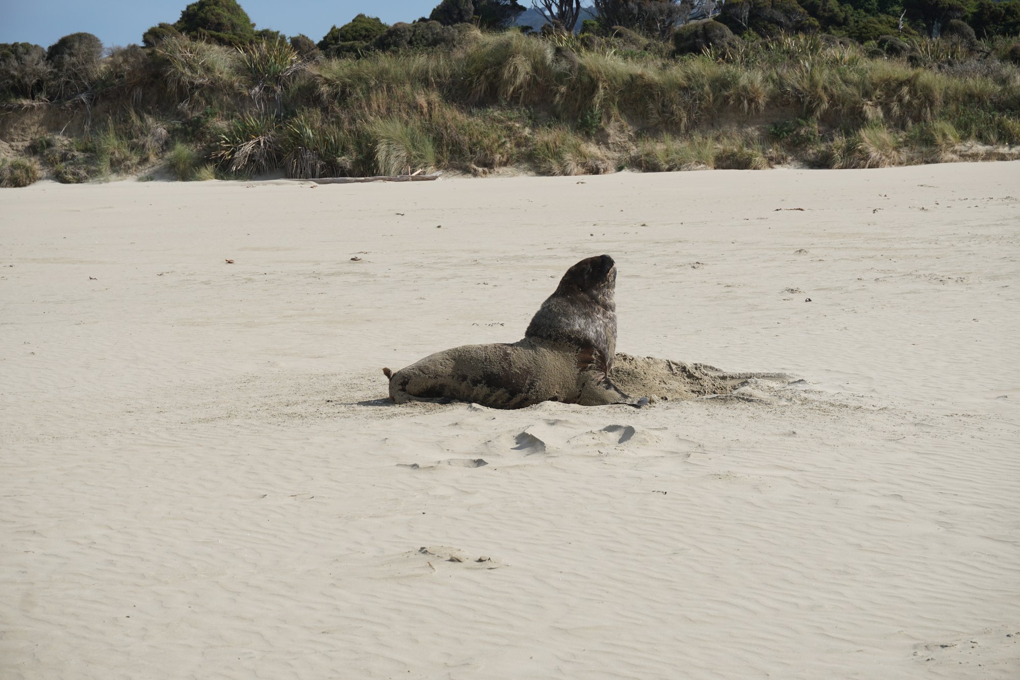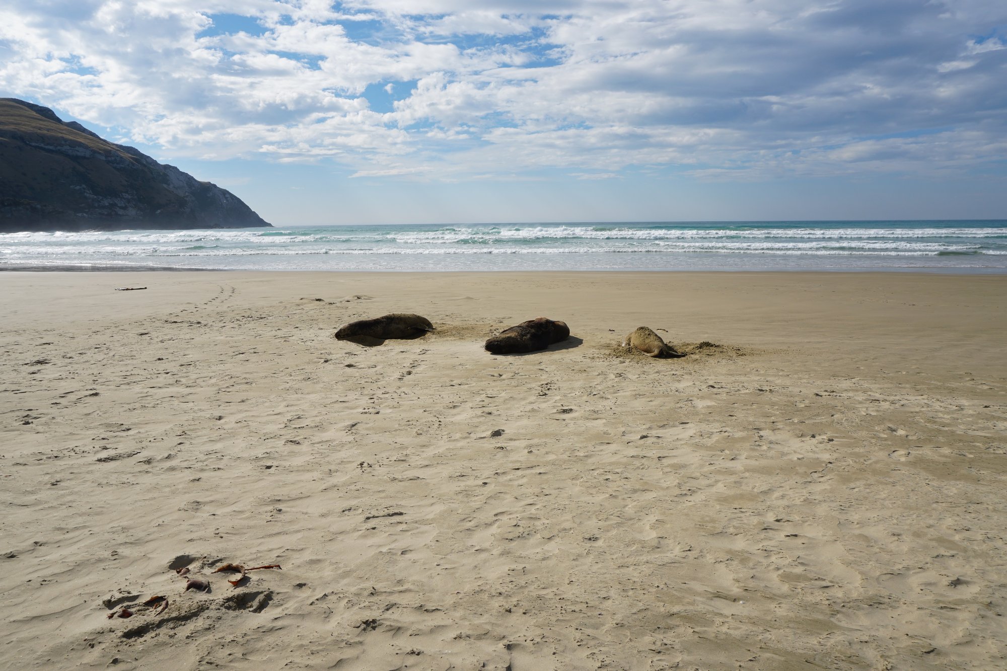 De volgende ochtend rijden we naar Surat Bay. Aan de baai heb je een lang zandstrand en daarom is het een geliefde plek voor zeeleeuwen om te rusten. Wij hopen natuurlijk dat we deze enorme dieren gaan zien! Maar helaas, we lopen zo’n 3 kwartier over het strand, maar geen zeeleeuw te bekennen. Hopelijk hebben we bij de volgende plek meer geluk!