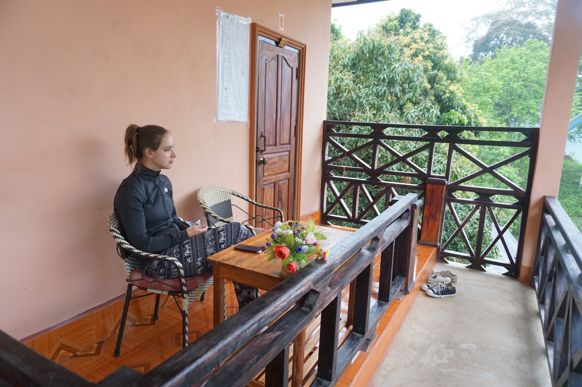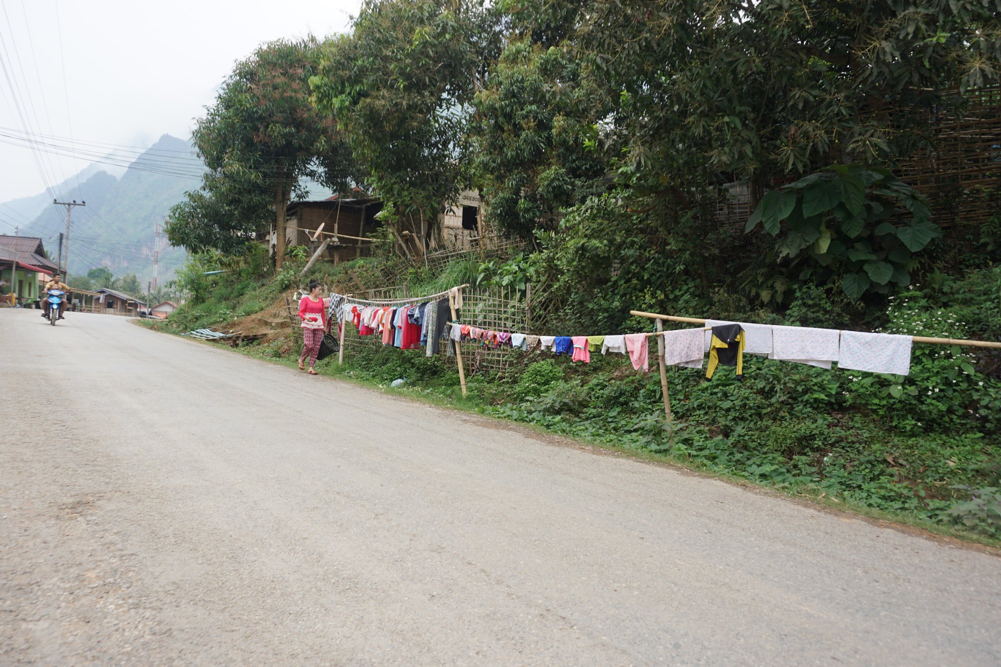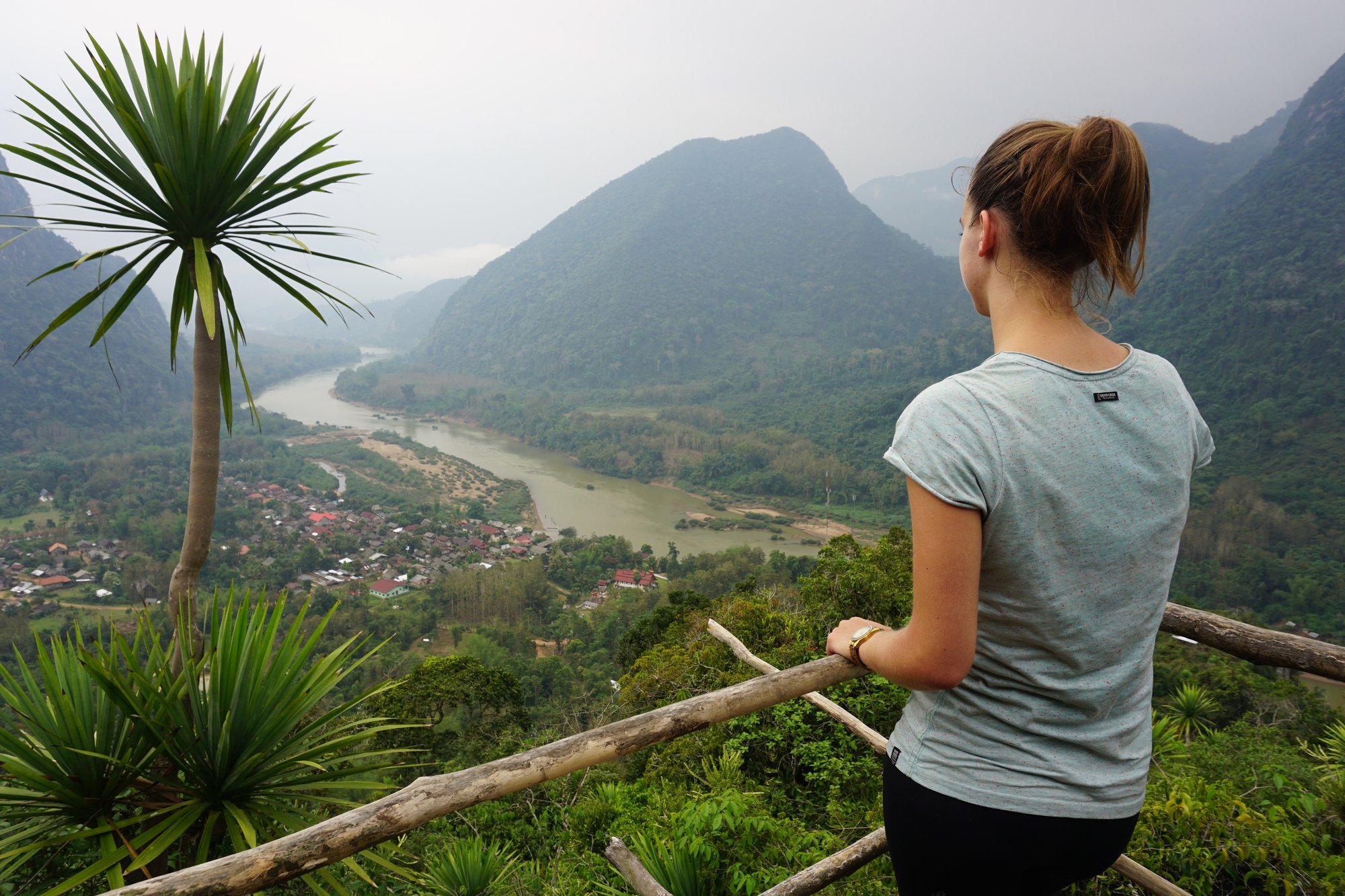Nong Khiaw was onze laatste bestemming in Laos en nergens hebben we het fris gehad, behalve in Nong Khiaw. Het is er vaak mistig en de luchtvochtigheid is behoorlijk hoog. Doordat je in de bergen zit, koelt het 's avonds best wel af en lange kleding is dan geen overbodige luxe. Ohja, ook handig om te weten: natte kleding droogt vrijwel niet. Dus zorg voor voldoende droge kleren en eventueel extra schoenen in je backpack. ;-)