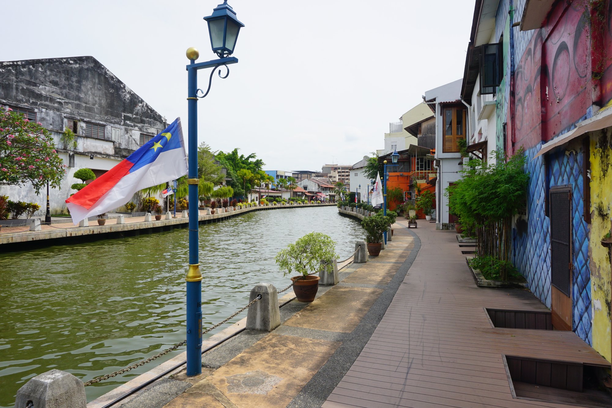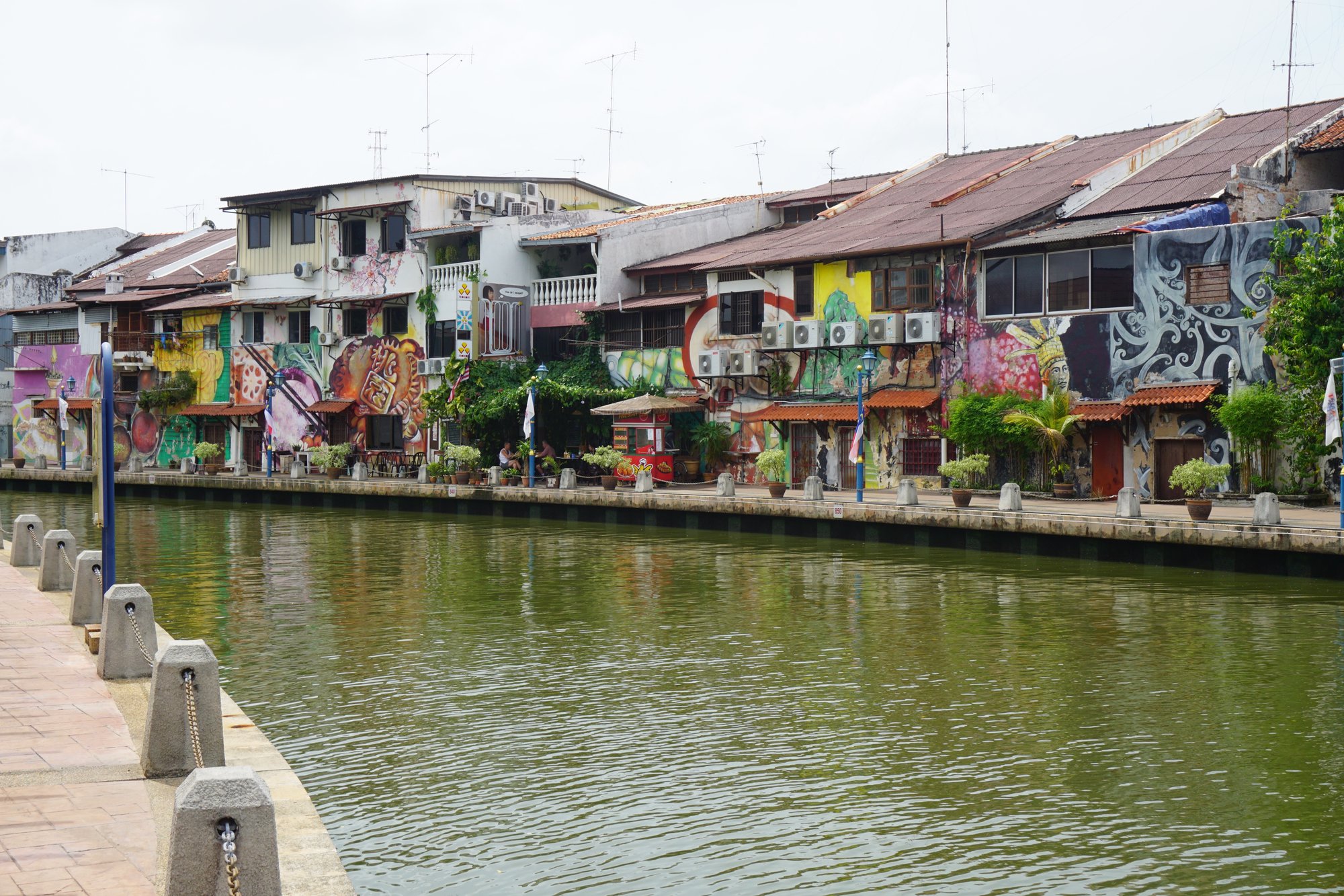 Het allerleukste om te doen in Melaka vonden wij het wandelen langs de rivier. Er staan namelijk allemaal mooie, kleurrijke gebouwen langs het water en sommige gebouwen zijn zelfs versierd met street art. Ook zitten er veel cafeetjes en restaurantjes langs het water, dus genoeg leuke plekken onderweg om even bij te komen en af te koelen met een fris drankje!