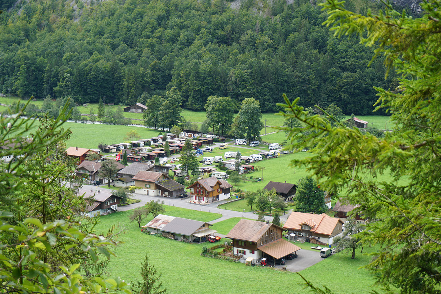 We willen vanuit de camping in Ewil naar Lauterbrunnen rijden, maar zien op de kaart wel dat we dan sowieso over een bergpas moeten. De vele bochten geven ons in ieder geval de indicatie dat het flink bergachtig is. ;-) Om eerst nog even ons vertrouwen op te krikken, rijden we een rondje door het dorp. De koppeling voelt weer zoals normaal, dus we gaan ervoor. Op naar de Brünigpass!